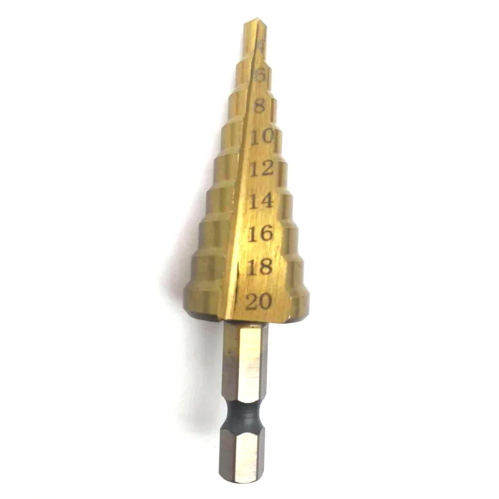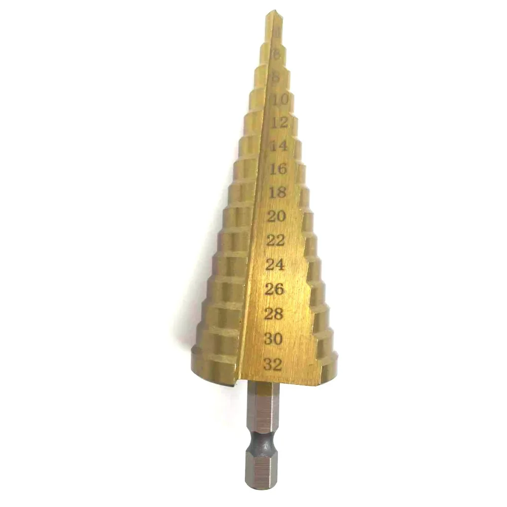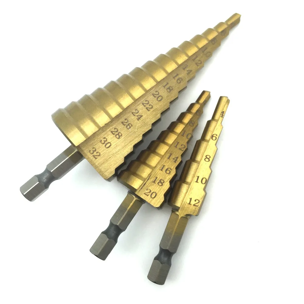 Конусное сверло из быстрорежущей стали 4-12 мм 4-20 мм 4-32 мм титановое ступенчатое конусное сверло резак для отверстий по дереву, металлу сверлаUSD 2,14-7,66/Шт.Спецификация: