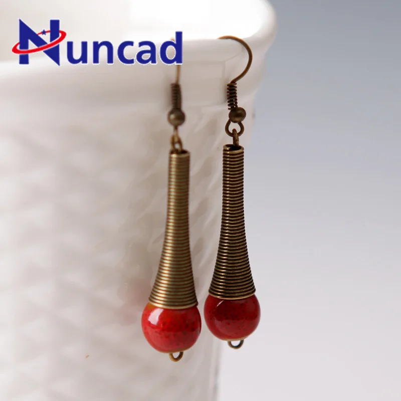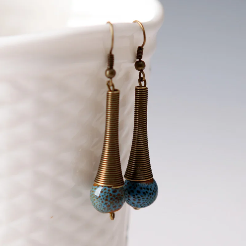 Серьги-подвески из керамики в богемном стиле, модные женские серьги из сплава с красными и синими керамическими бусинами, ювелирные изделия