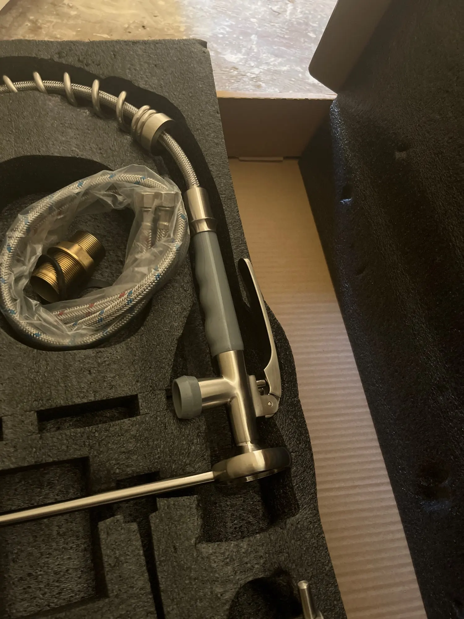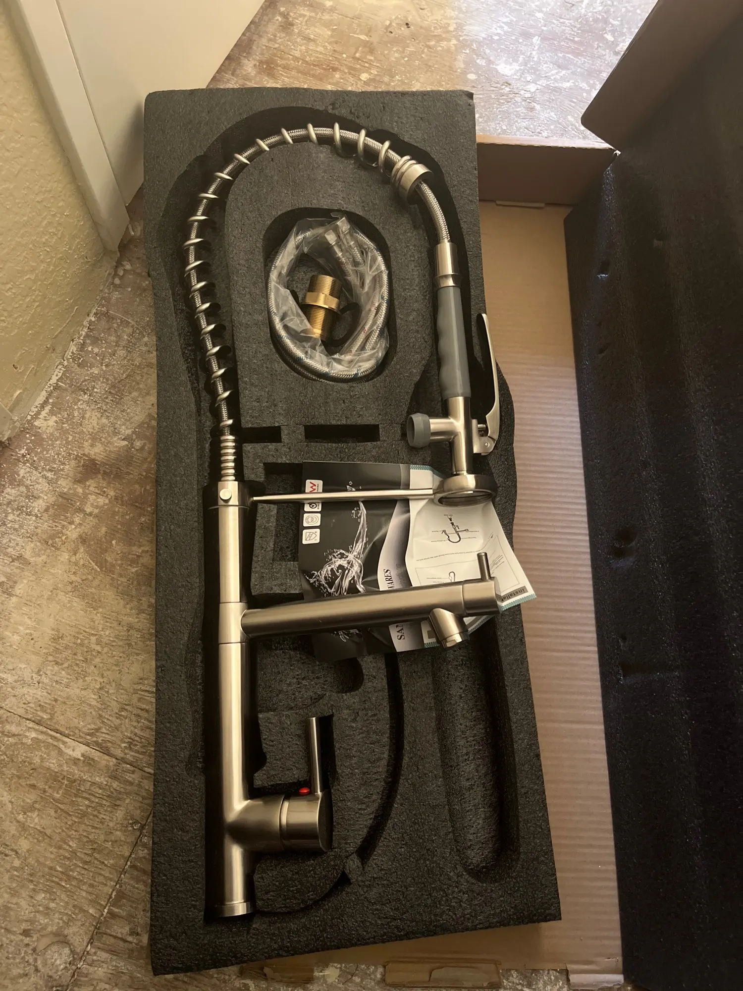 Посылка включает в себя: кран + трубы для горячей и холодной воды + аксессуар для установки