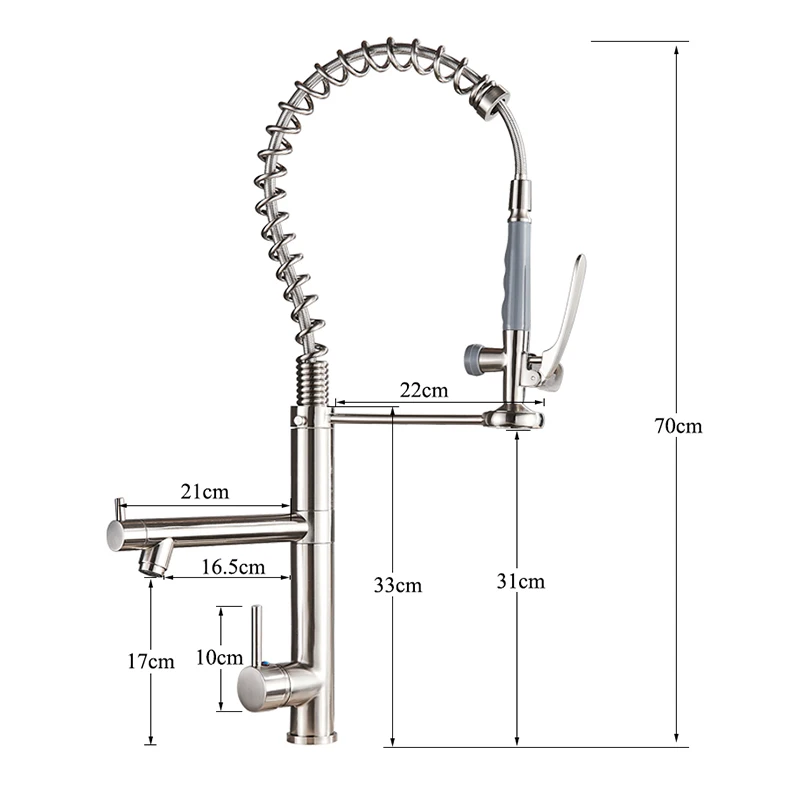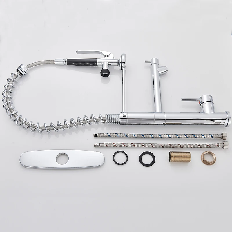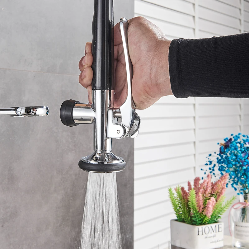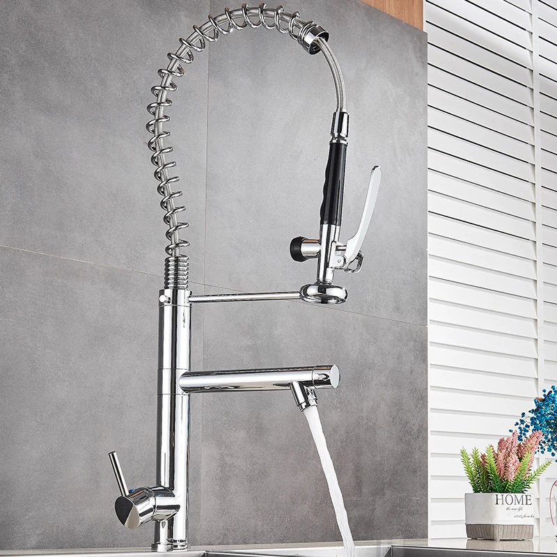 Яркий хромированный пружинный выдвижной кухонный кран, насадка для распылителя без рук с замком, кухонный смеситель для горячей и холодной воды, поворотный носик