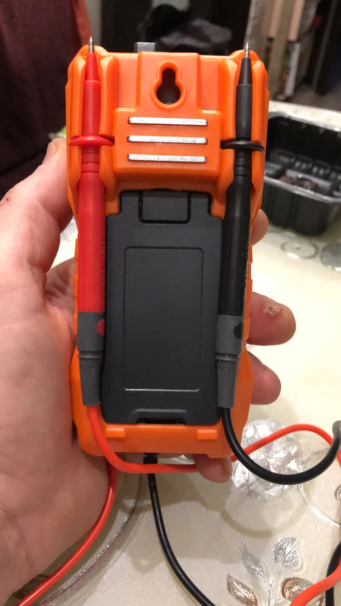 пришёл быстро. инструкция на английском, но кто умеет пользоваться разбноется. показания сверял в розетке 1 вольт разница считаю нормой. 0.1 для 12 вольт тоже. Корпус мне понравился сделал из добротного пластика. На щупах наконечники снимается. комплектация на фото