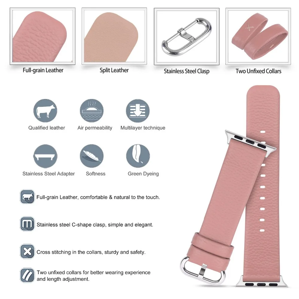 ❤1 X Кожаный ремешок для Apple Watch с пряжками из нержавеющей стали (Apple watch только для иллюстрации и не входит в комплект.)