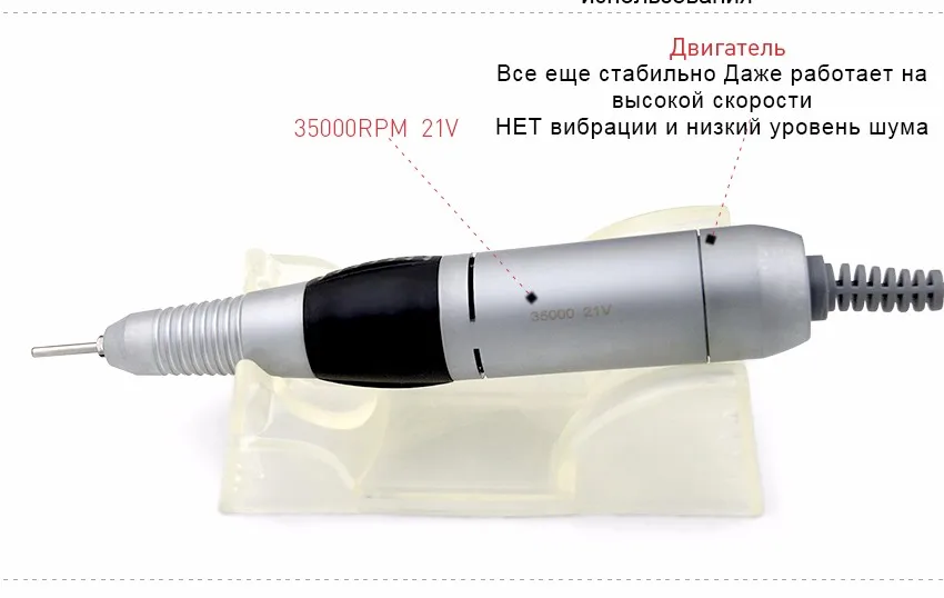 Аппарат хороший, тяжёлый, тихий, фреза идёт плавно не скакает, при 35 тис в ручке слышно обдув, сама ручка железная не большая в руку ложиться чётко!Спасибо продавцу упаковал хорошо!