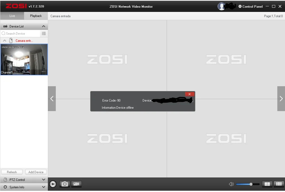 Камера хорошо работает для записи, PTZ не работает правильно в iSPY.