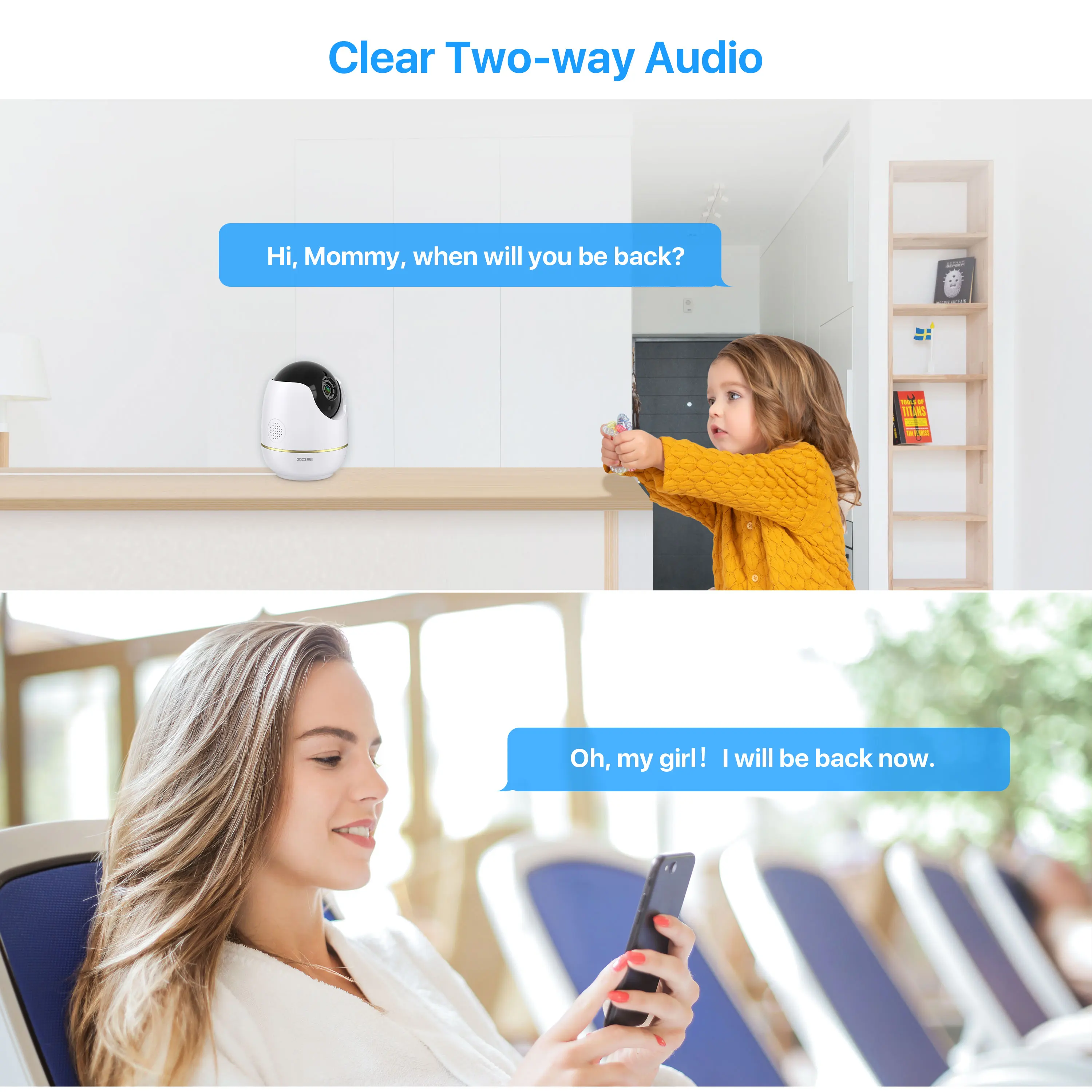 IP-камера ZOSI, 1080P HD, Wi-Fi, беспроводная, 2.0MP, ИК, сетевая, с двусторонним аудио, радионяня