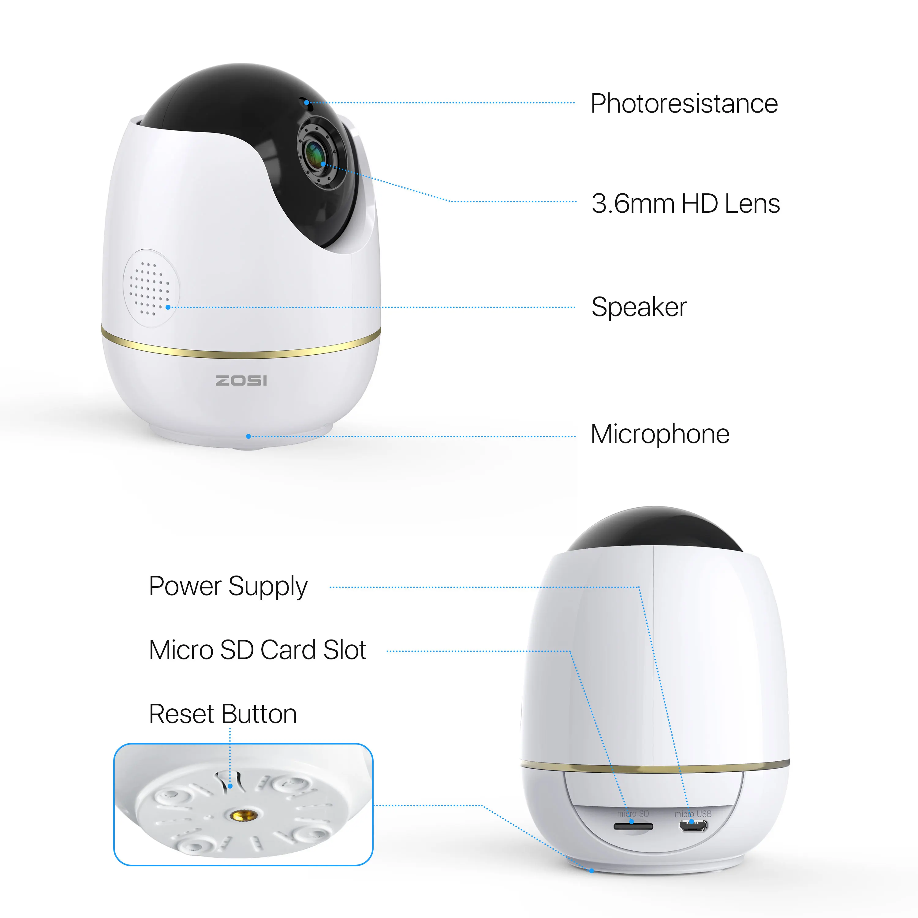 Прошу прощения у продавцов и производителей, но есть претензии. Обидно и, очень вероятно, я что-то делаю не так, НО... Скачал программу Zosi Smart в свой Xiaomi, но устройство не могу обнаружить. При подключении штекера электро-питания камера не включатся, использую блок питания от зарядного устройства телефона - камера "оживает", производит вращение и, наверное, готова к работе. И наконец, карта памяти просто провалилась во внутрь корпуса при установке в разъем.
