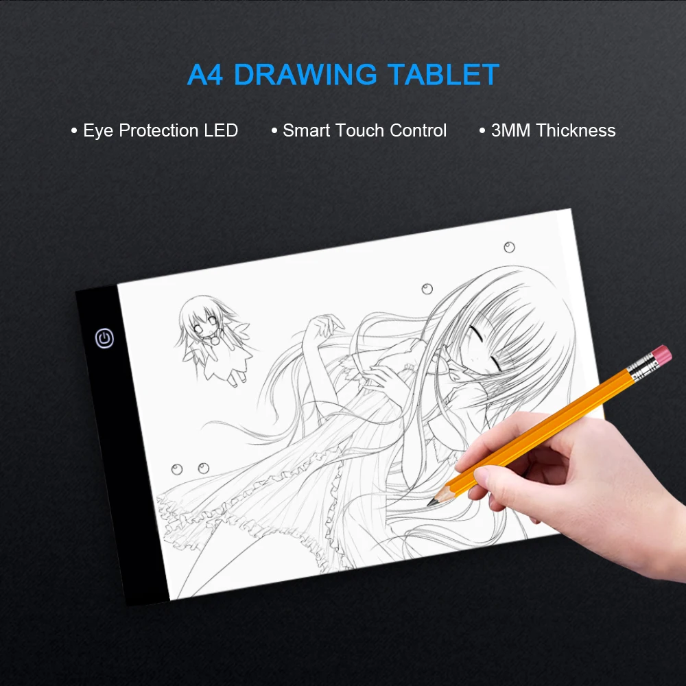 Цифровой графический планшет CHIPAL, ультратонкий планшет для рисования A4, световая LED подсветка, USB, художественный Графический стол, доска для копирования