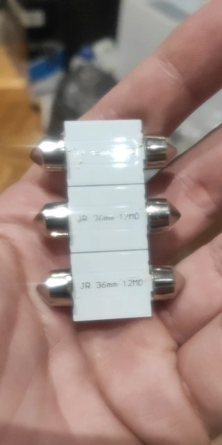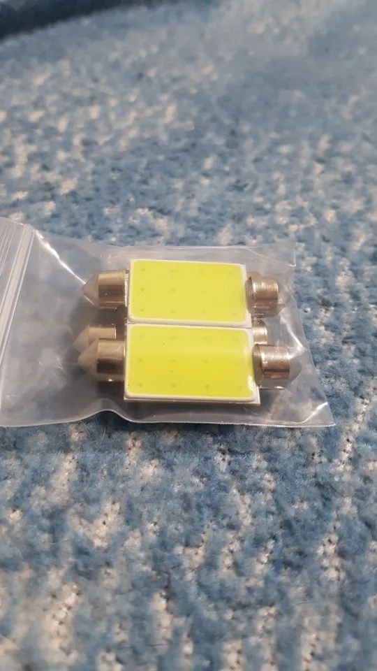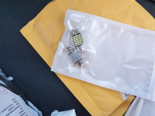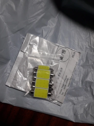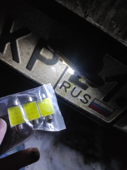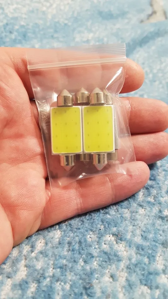 Доставка до МСК 2 месяца. Качество под вопросом: работать-работает, но в штатный разъём не подходит. Заказал 39 мм (как и штатная лампа), но по факту оказались 40-42, но самое главное - «световое тело» на 4 мм больше, чем расстояние между контактами. Выход нашёл, но осадок остался. 5 звёзд, за то, что не стали «мозги делать», а мгновенно отреагировали на спор (5 мин.) и вернули деньги ( ок. 4 часов). При заказе имейте в виду: пластина со светодиодами должна помещаться между контактами, а размер лампы габаритный!