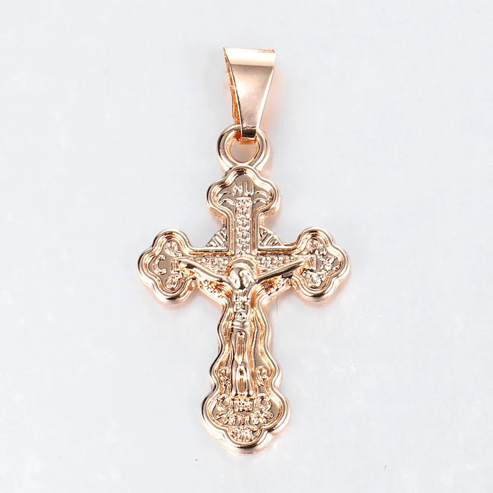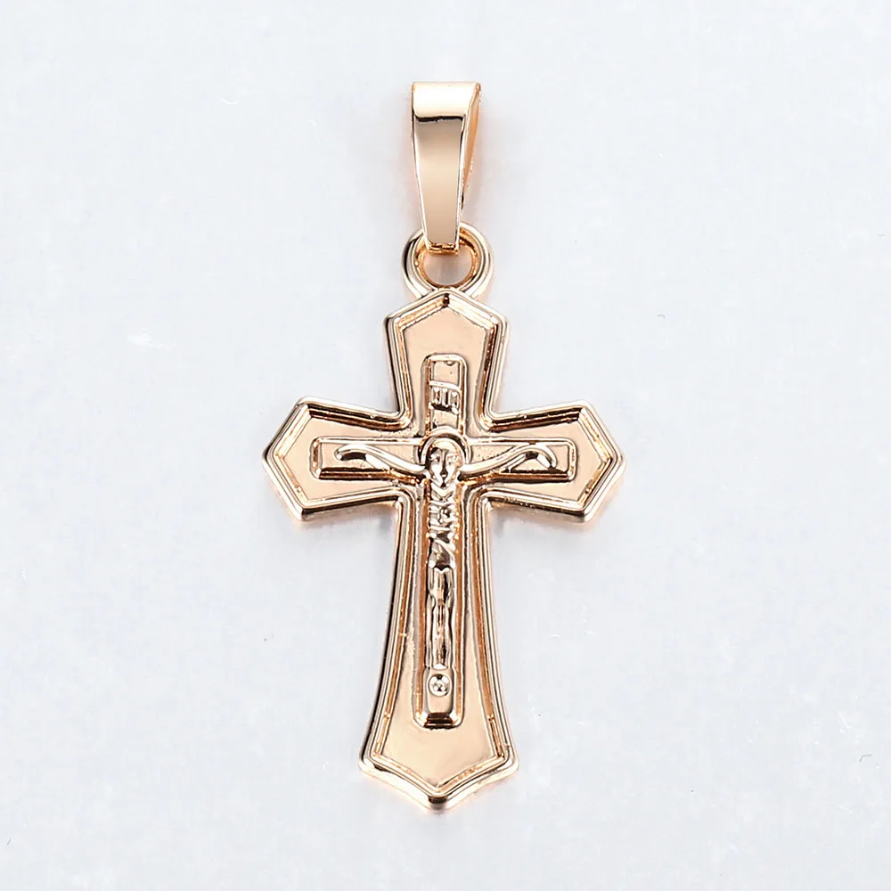 Ожерелье с крестом для женщин и мужчин, цепочка с подвеской Богородицы и Иисуса Христа под розовое золото 585 пробы, религиозное христианское ювелирное изделие, LGP255
