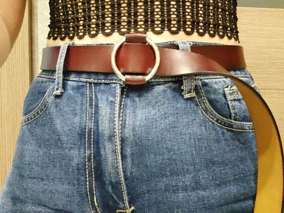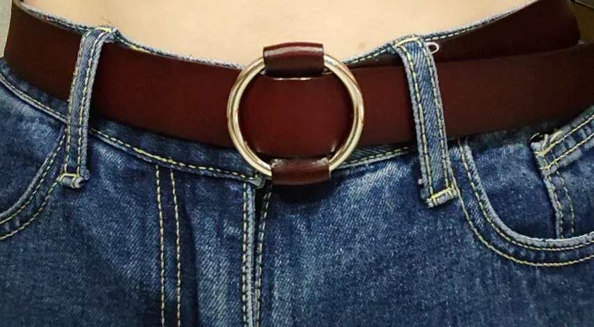 Женский ремень с пряжкой в виде круглого кольца