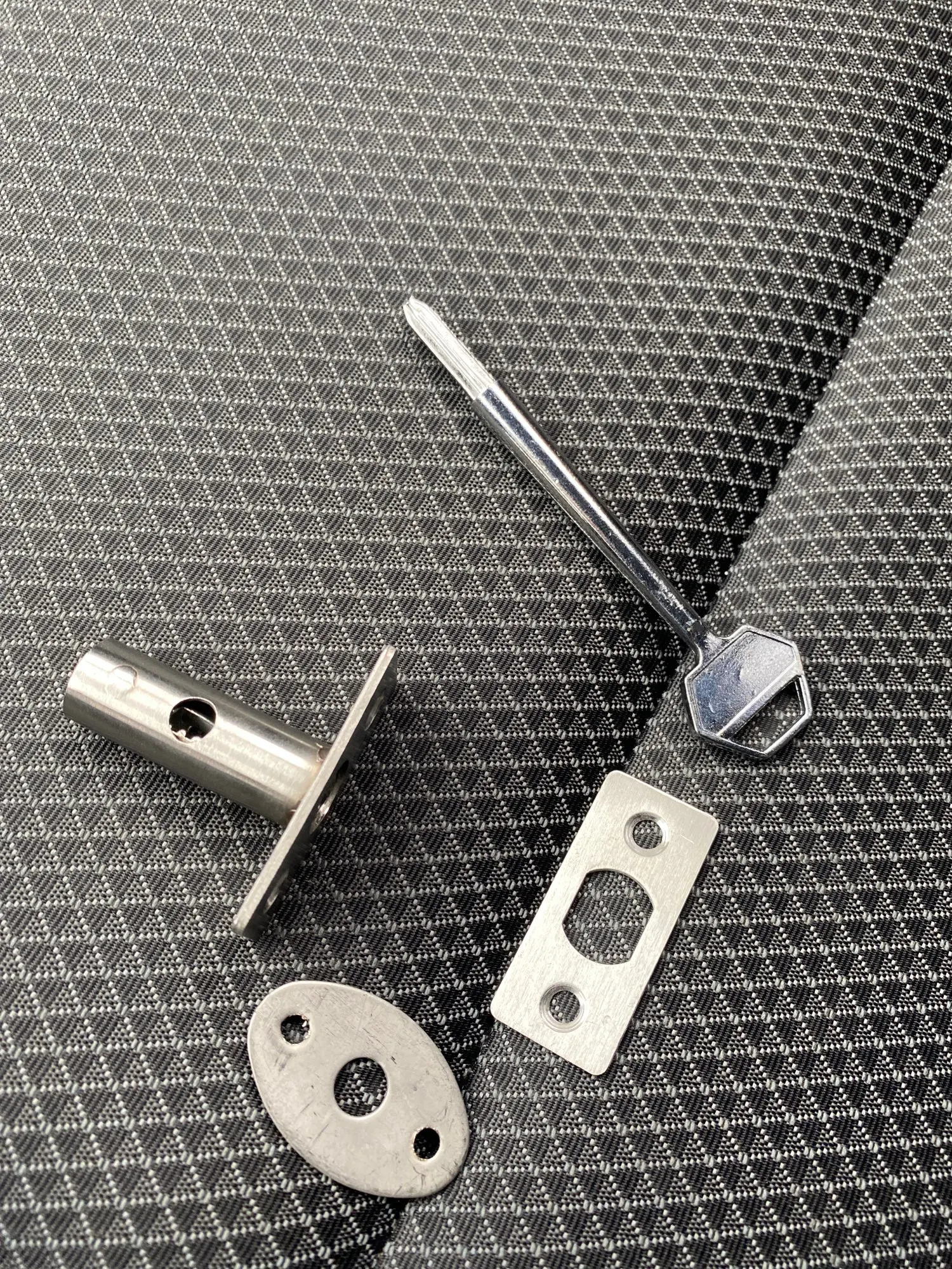 Это строго говоря не замок секретки нет, просто задвижка,. Для не секретных применений можно использовать, открывается простой ответной 4..5 мм шириной
