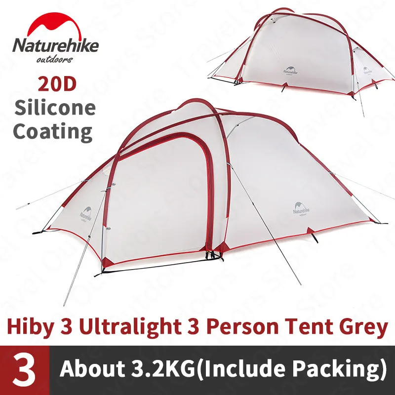 Hiby 3 палатки вес: 20D с нейлоновым покрытием силикон 3,2 кг (включая упаковку)/210T полиэфирная ткань 2,88 кг (без заземляющих гвоздей)