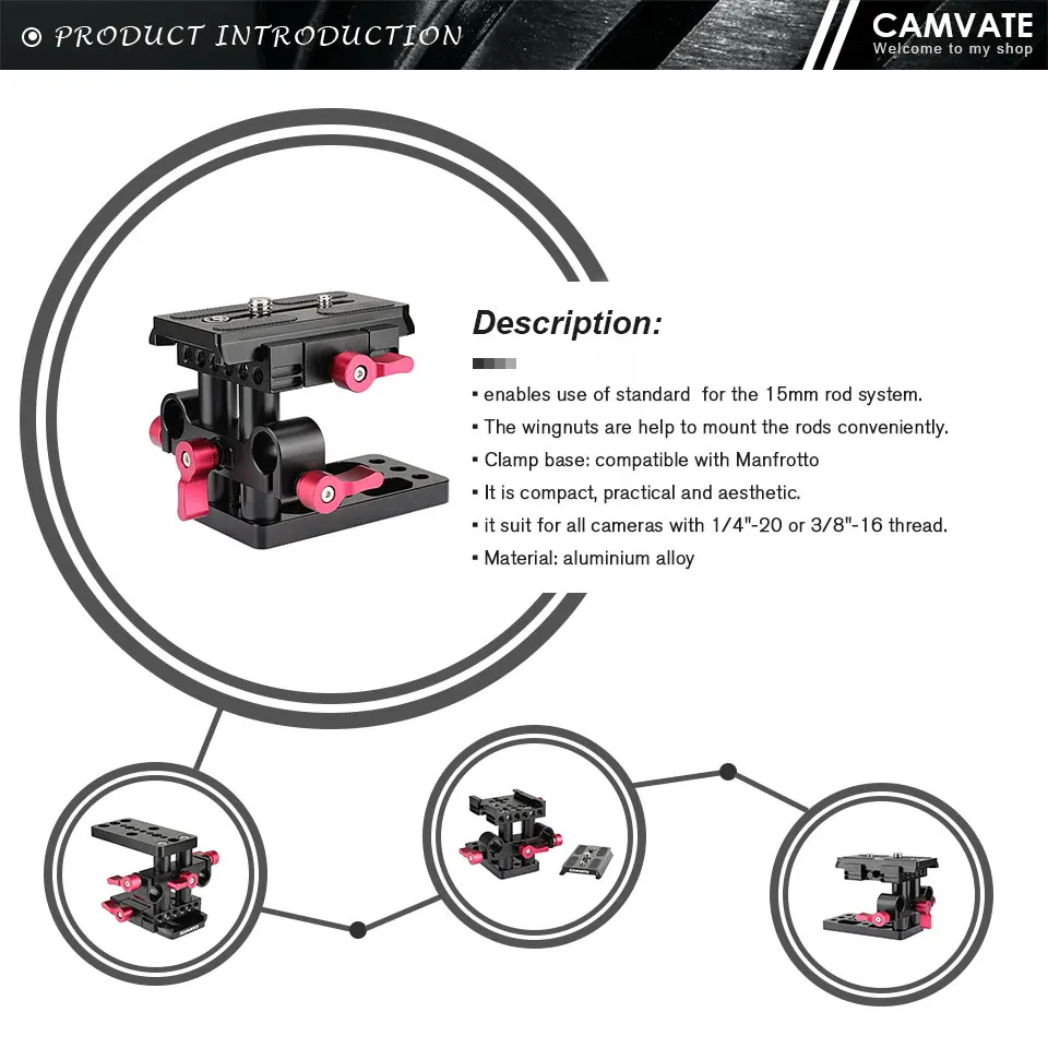 Монтажная пластина CAMVATE для камерыQR-основание со стандартным 15-мм LWS двойным стержневым зажимом для штатива Manfrotto 577501 504 701