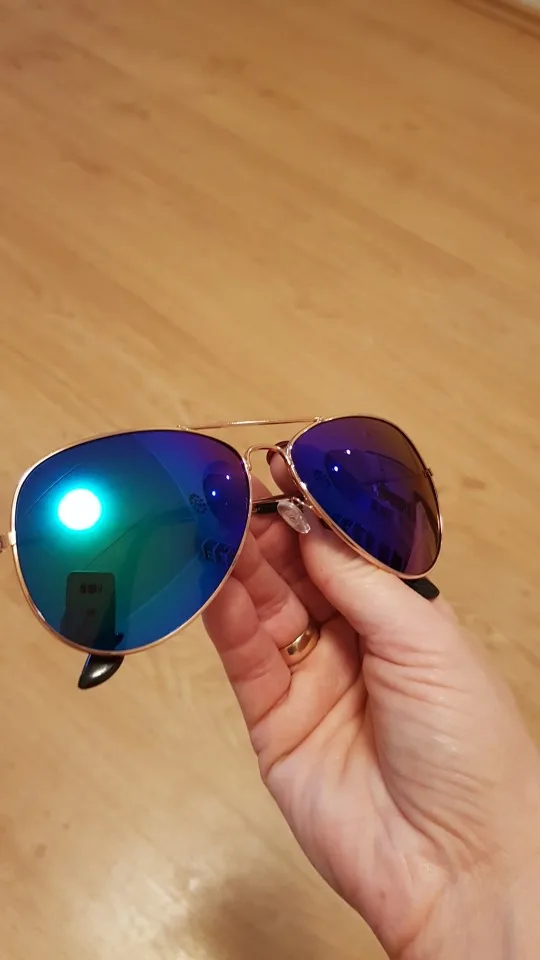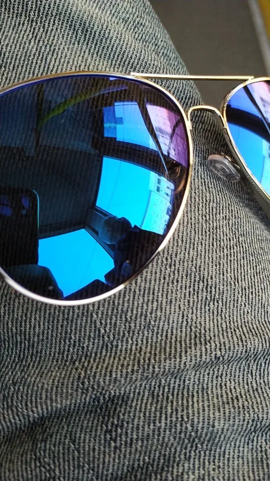 Очки красиво зеркальные. Цвет приятно жёлтый, но немного просвечивается. Хотелось бы качества по лучше. Желтый слой одного стекла слегка потертый. Одна ножка двигается очень легко, даже слишком. Другая двигается очень жёстко.