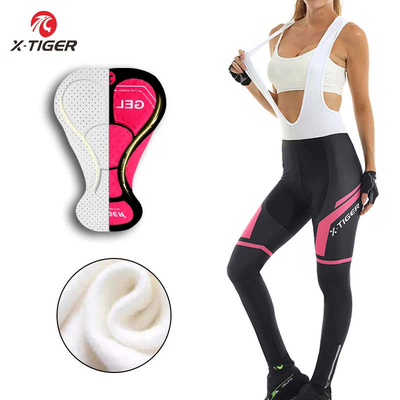 Женские утепленные комбинезоны X-Tiger для горного велосипеда, теплые велосипедные штаны с 3D гелевыми подушечками, трико для горного велосипеда
