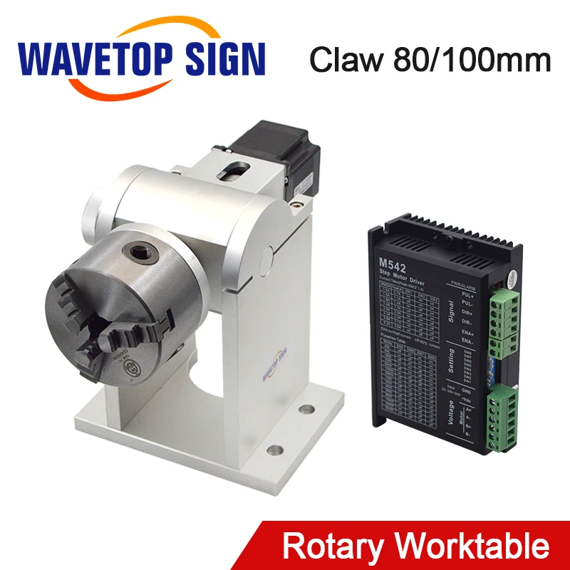 Вращающийся Рабочий стол WaveTopSign с патроном диаметром 80, 100 мм, двухфазный шаговый двигатель, драйвер, источник питания 24 В постоянного тока для лазерной маркировочной машины