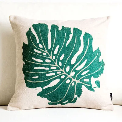 Декоративная диванная подушка в скандинавском стиле, с зелеными листьями, с тропическими растениями, для поясницы, подушка для автомобиля, офисный диван с подушкой, спинка кровати