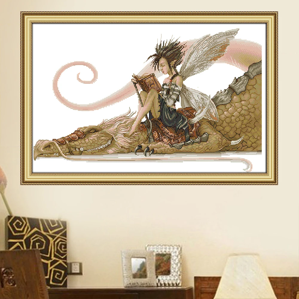 Вышивка крестиком Joy Sunday, девушка сидела на драконе, читая книгу, штампованная 11CT 14CT вышивка в виде животного для набора для вышивки крестиком