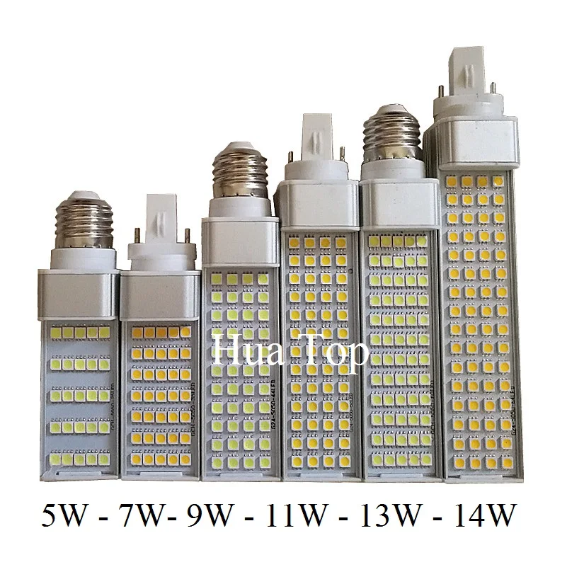Лампа светодиодная, 5 Вт, 7 Вт, 9 Вт, 11 Вт, 13 Вт, 14 Вт, E27, G23, G24, 85-265 В переменного тока, с горизонтальным разъемом, SMD5050, 2835