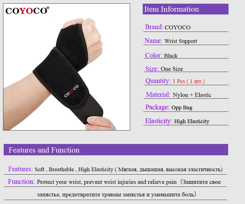 1 шт. Регулируемый бандаж запястья Защитите браслет COYOCO бренд профессиональной спортивной защиты напульсники опора для запястий черный