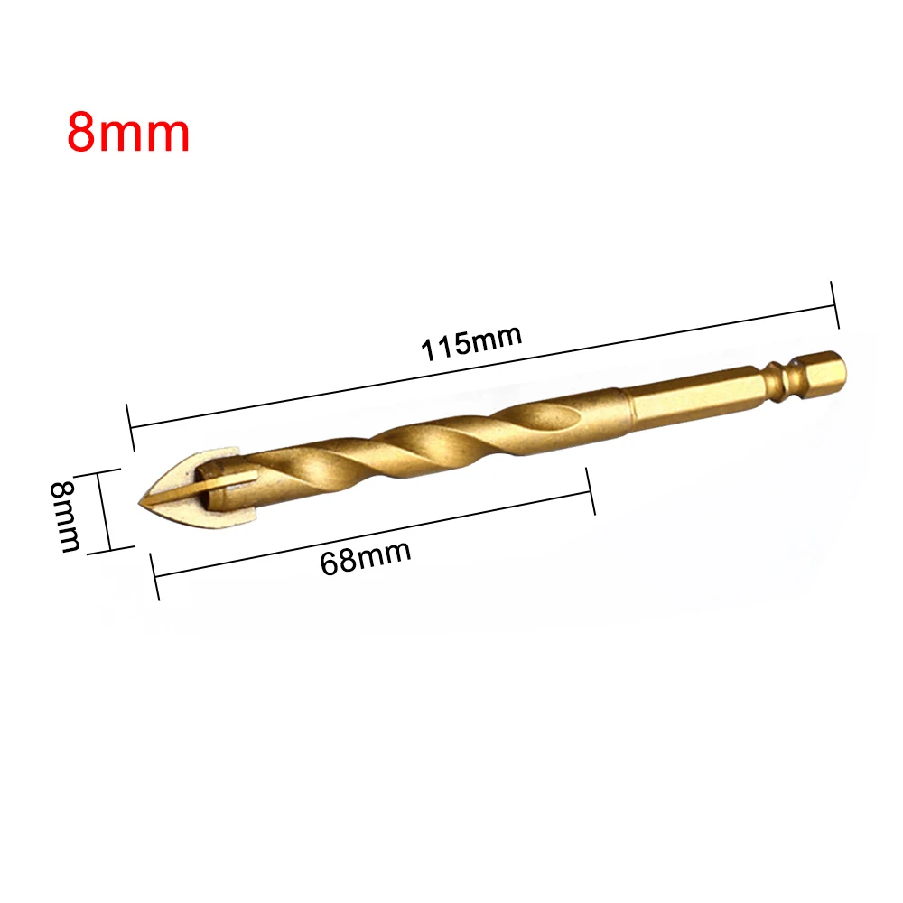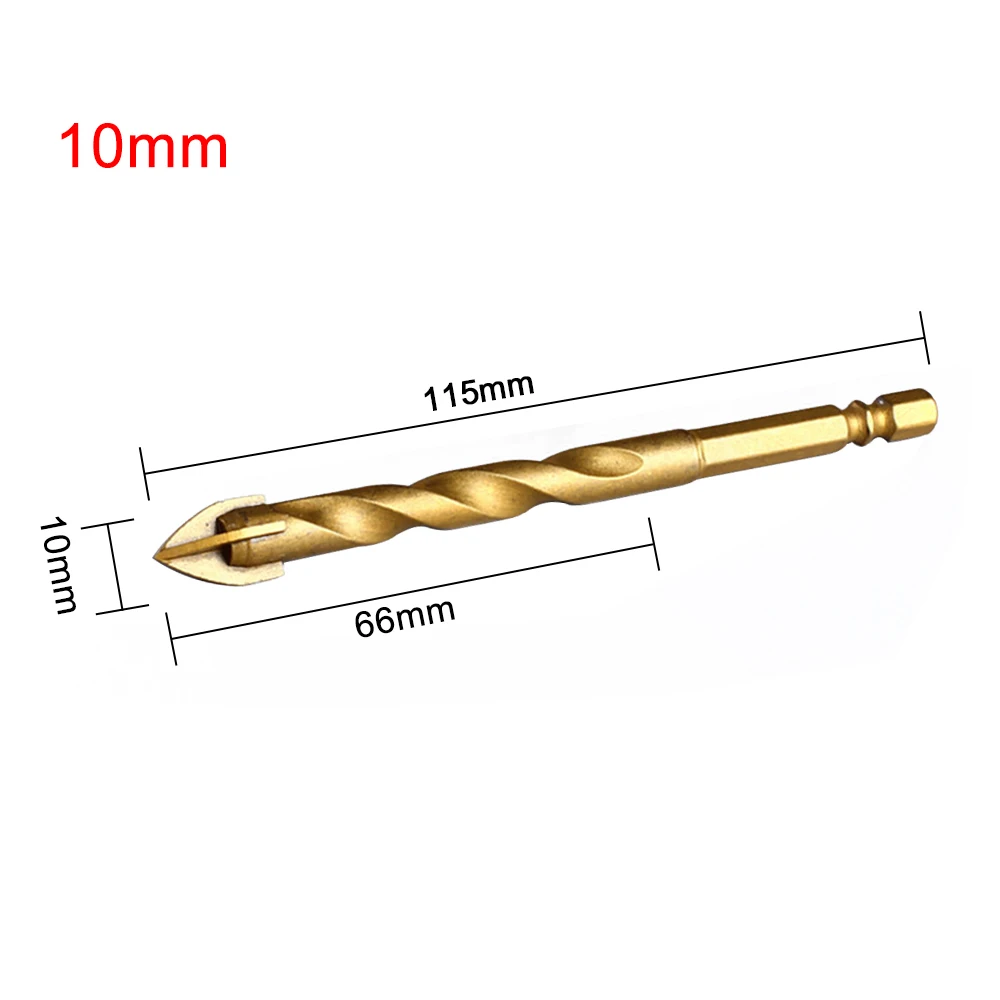 1 шт., сверло с шестигранным хвостовиком из титана, вольфрама, карбида, плитки, стекла, крестовая головка, сверлильный инструмент 6 мм, 8 мм, 10 мм, 12 мм