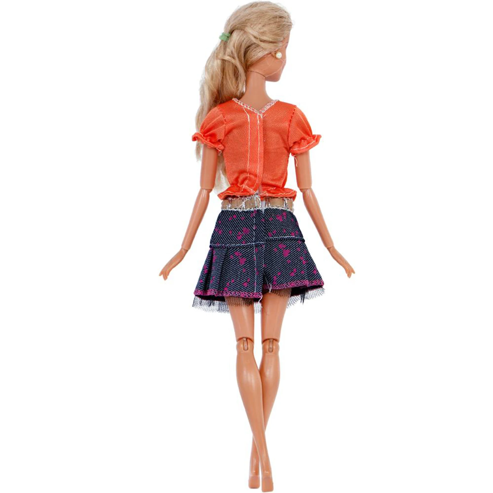 Милая обувь на выход одежда летняя повседневная одежда оранжевого цвета с цветочным узором, рубашка блуза ткань деним с юбкой Одежда для куклы Барби аксессуары