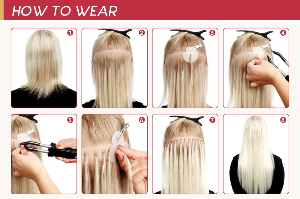 7. Попробуйте больше кусков волос с U-образным кончиком для полной головы