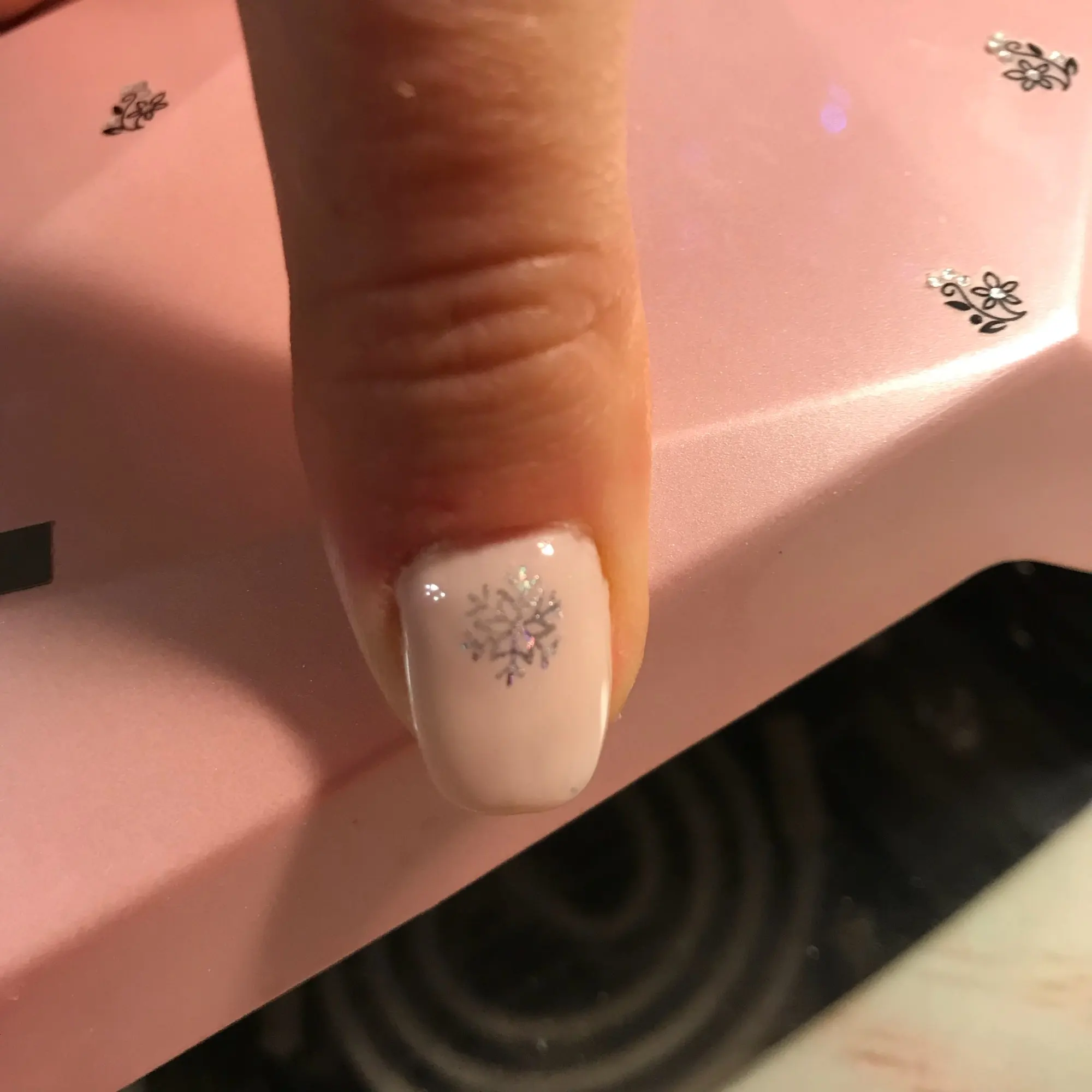 Картинки оказались лучше, чем ждала. Отпечатывала на липкий слой цветного гель-лака, сверху 1 слой жидкого топа. Фото сделано на 11 день носки. В жизни очень красивый голографический блеск!