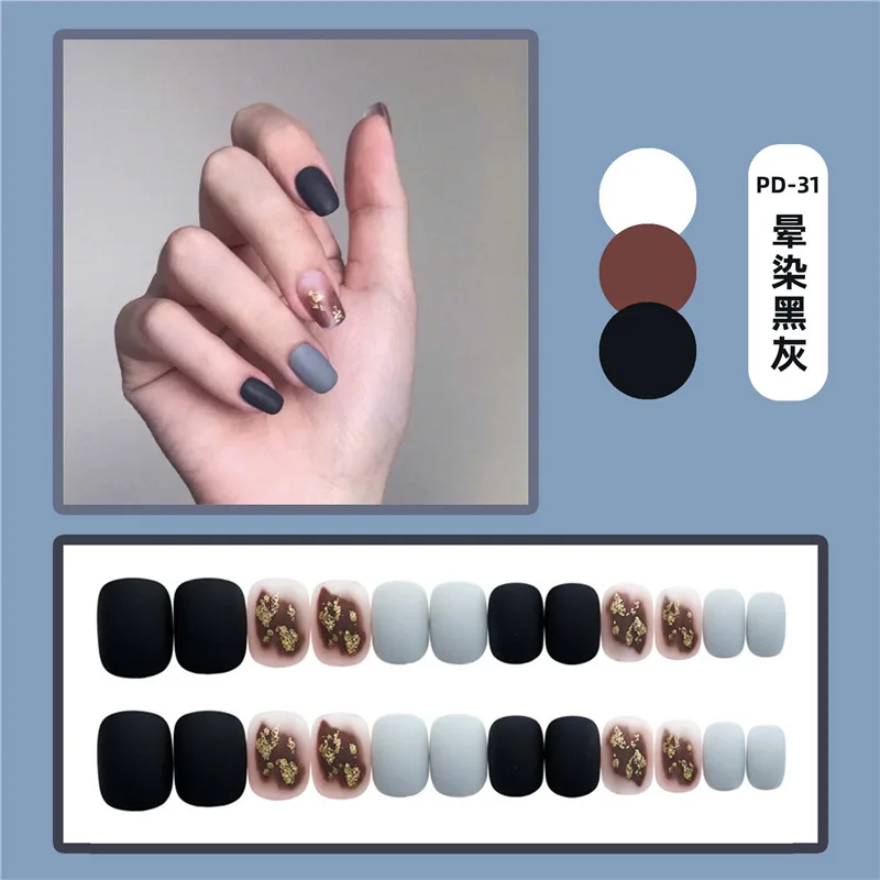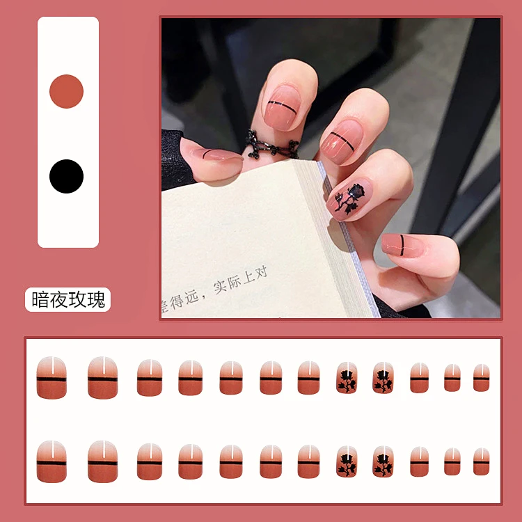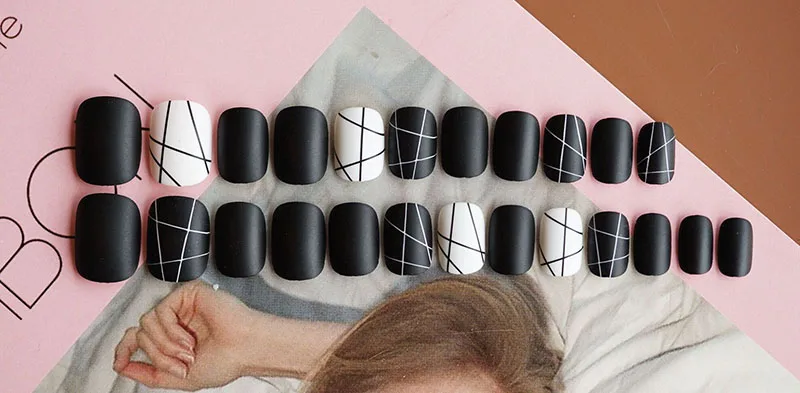 Новинка 24 шт. короткая поддельная наклейка матовая черная и белая линия девочка 3D сделай сам модный стиль пластиковые накладные ногти с клеевым гелем