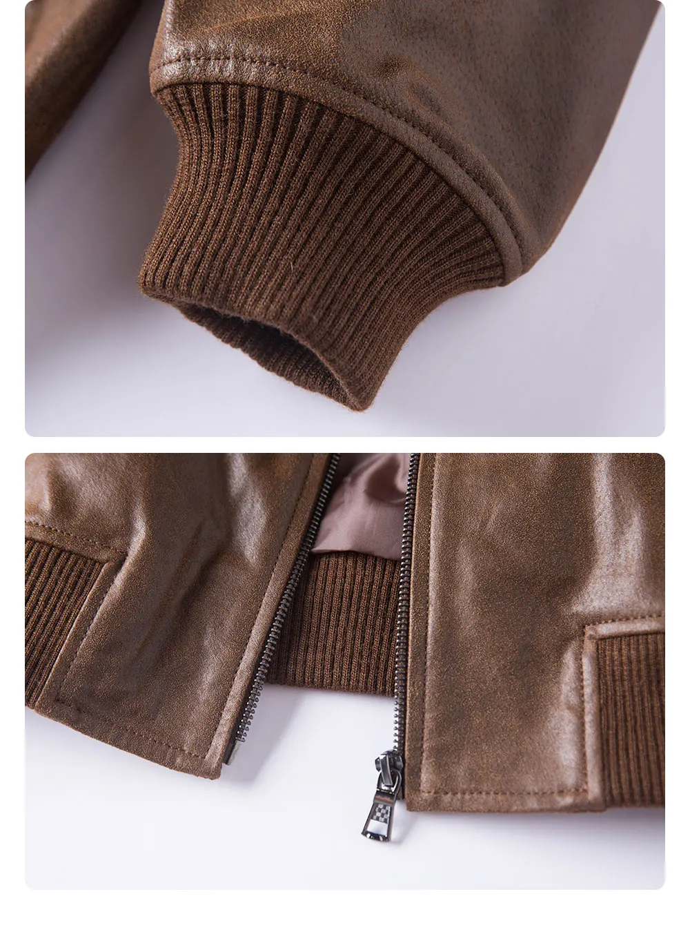 Kожаная куртка мужская из овечьей шкуры FLAVOR, облегающее бейсболь...