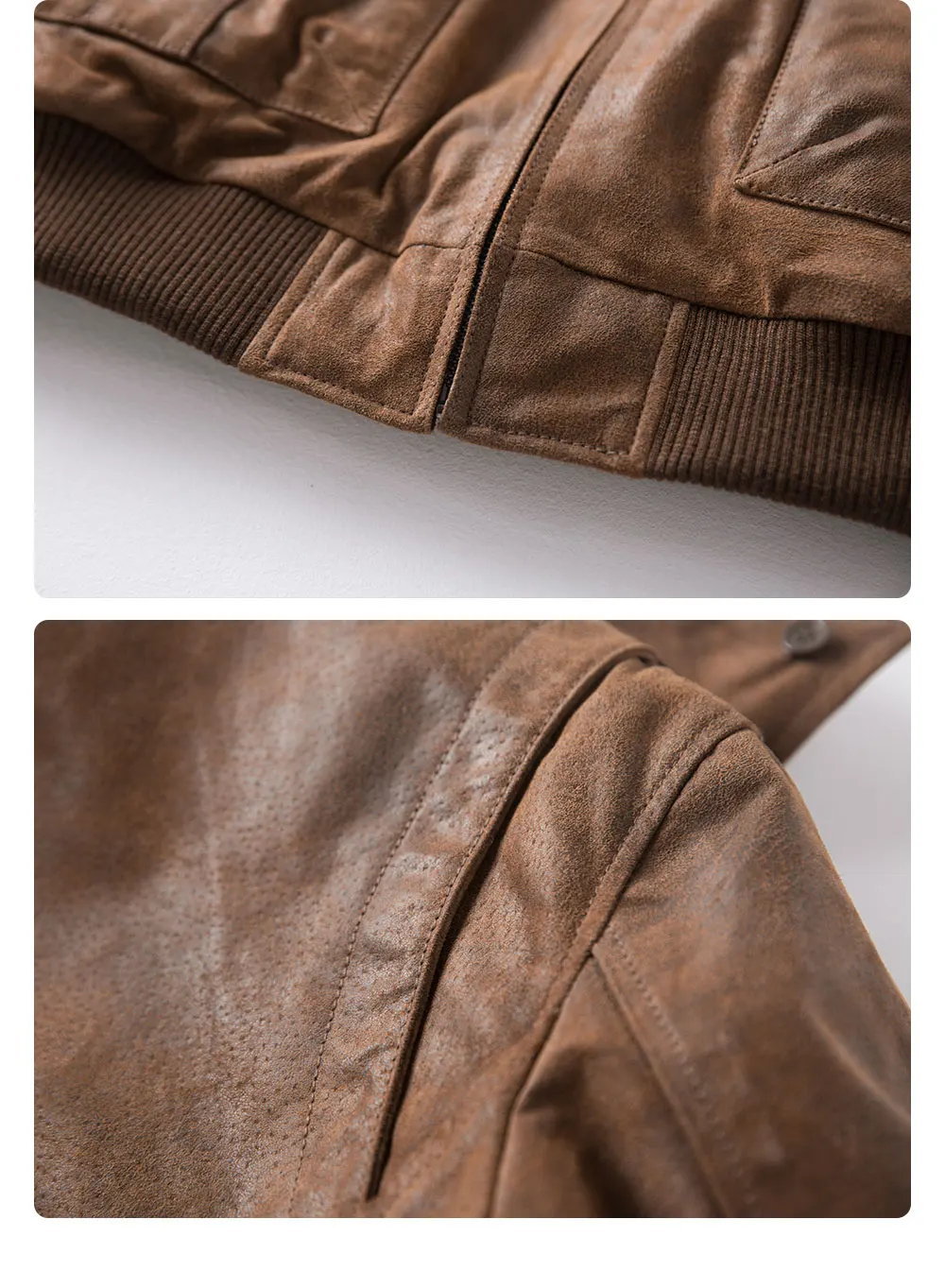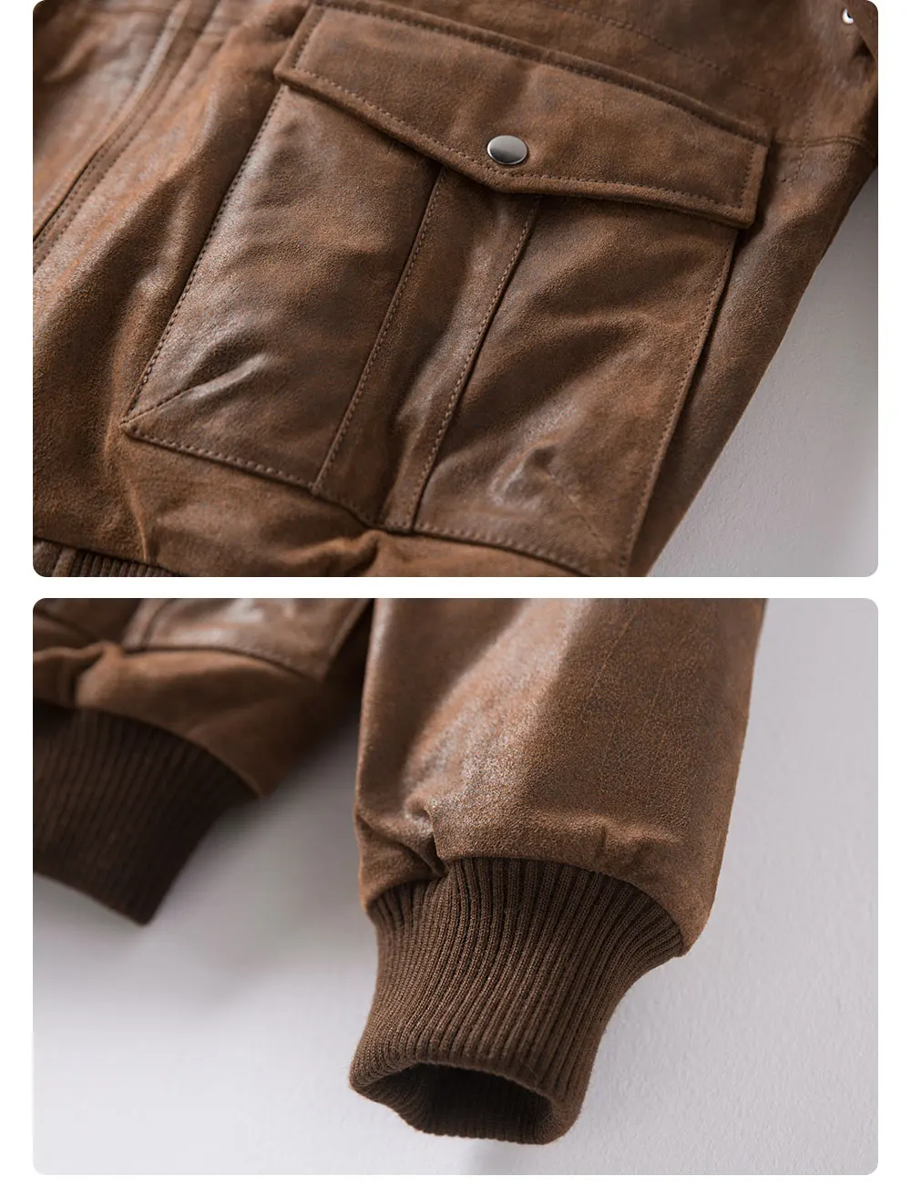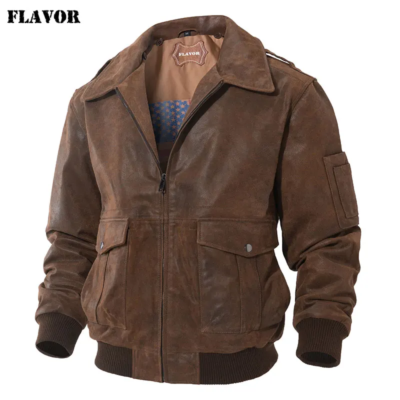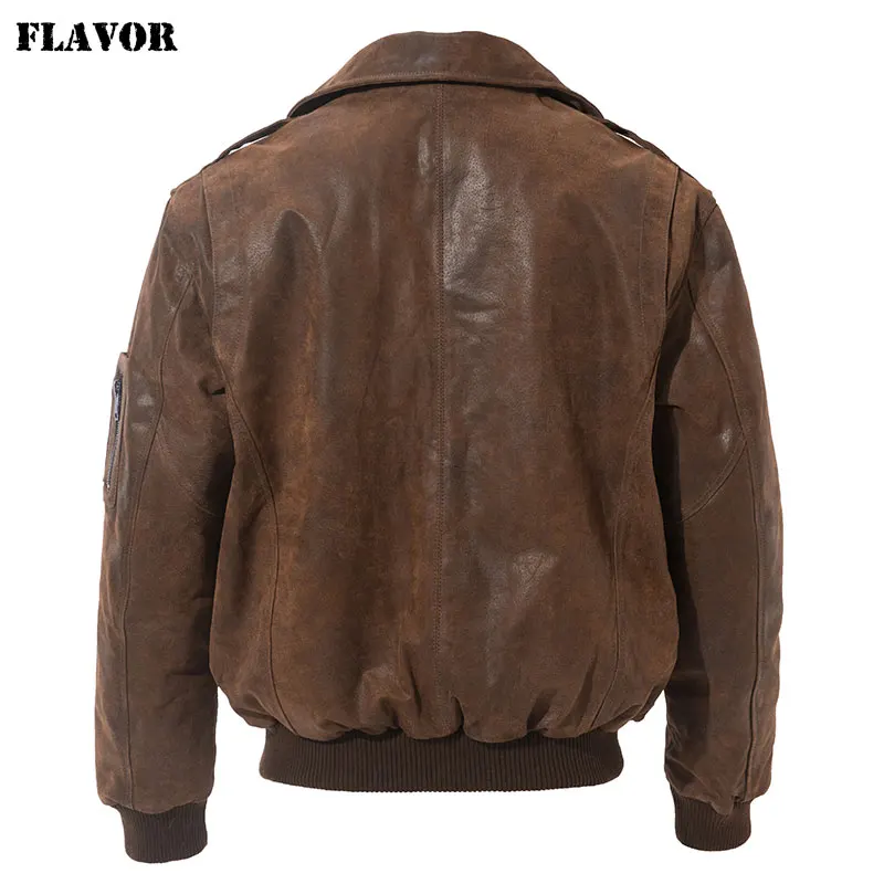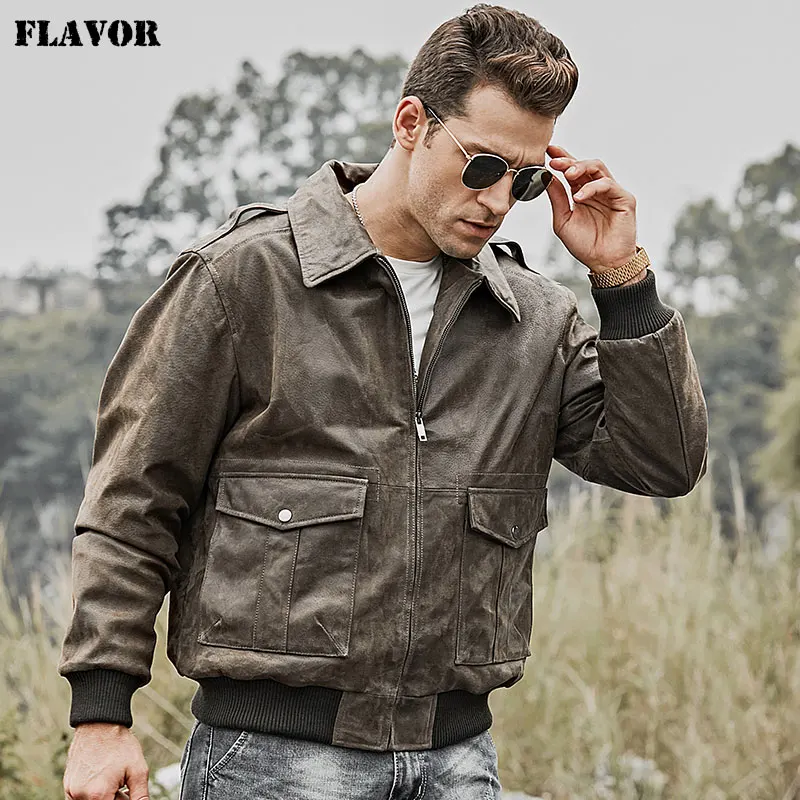 Kожаная куртка мужская бомбер FLAVOR, коричневый теплый жакет из натуральной свиной кожи со съемным меховым воротником, лётная кожаная куртка для мужчин, на осень 2019