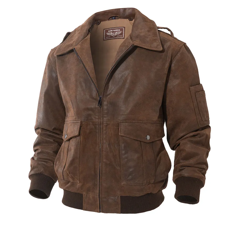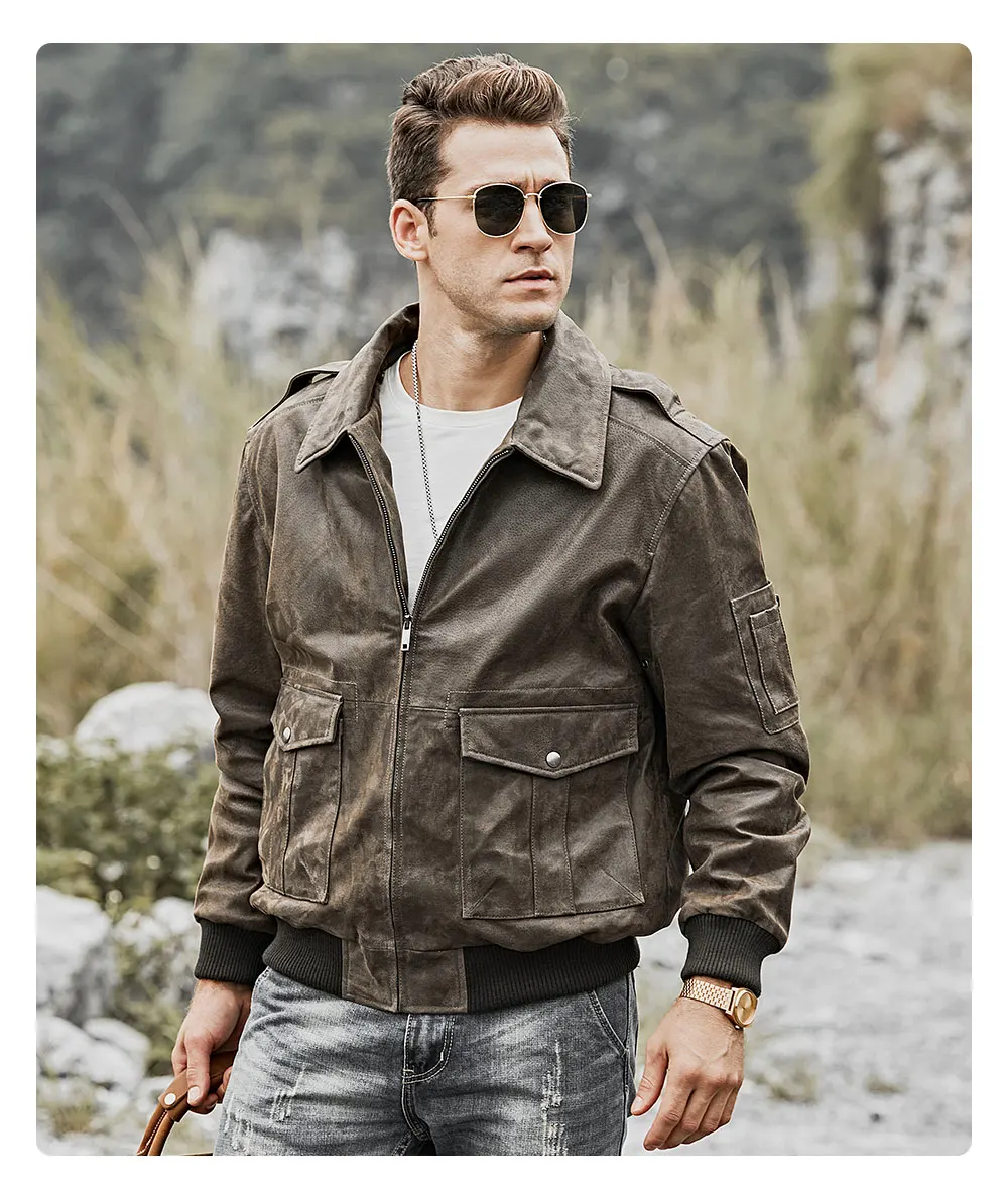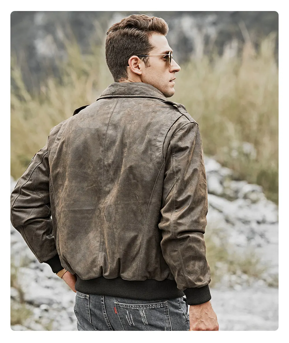 Kожаная куртка мужская бомбер FLAVOR, коричневый теплый жакет из натуральной свиной кожи со съемным меховым воротником, лётная кожаная куртка для мужчин, на осень 2019
