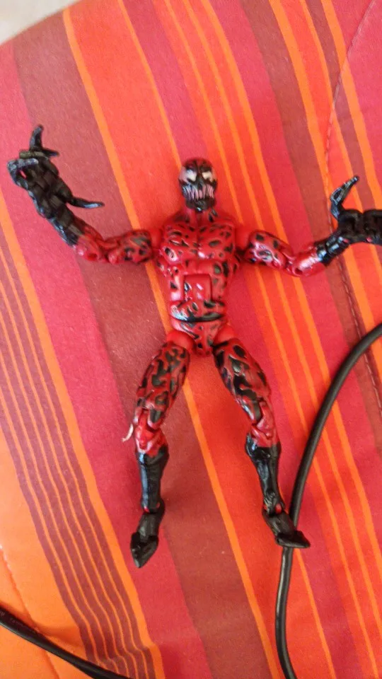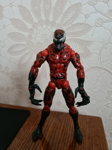 Carnage acyion Fig veru good, покраска и качество пластика приемлемы по цене. Я рекомендую купить у этого продавца. Одна вещь, которая мне не нравится, соединения не очень гибкие. Он имеет дополнительный пластик, который останавливает движения этой фигурки. Но благодаря лезвию я порезала его, и теперь все OKEY)