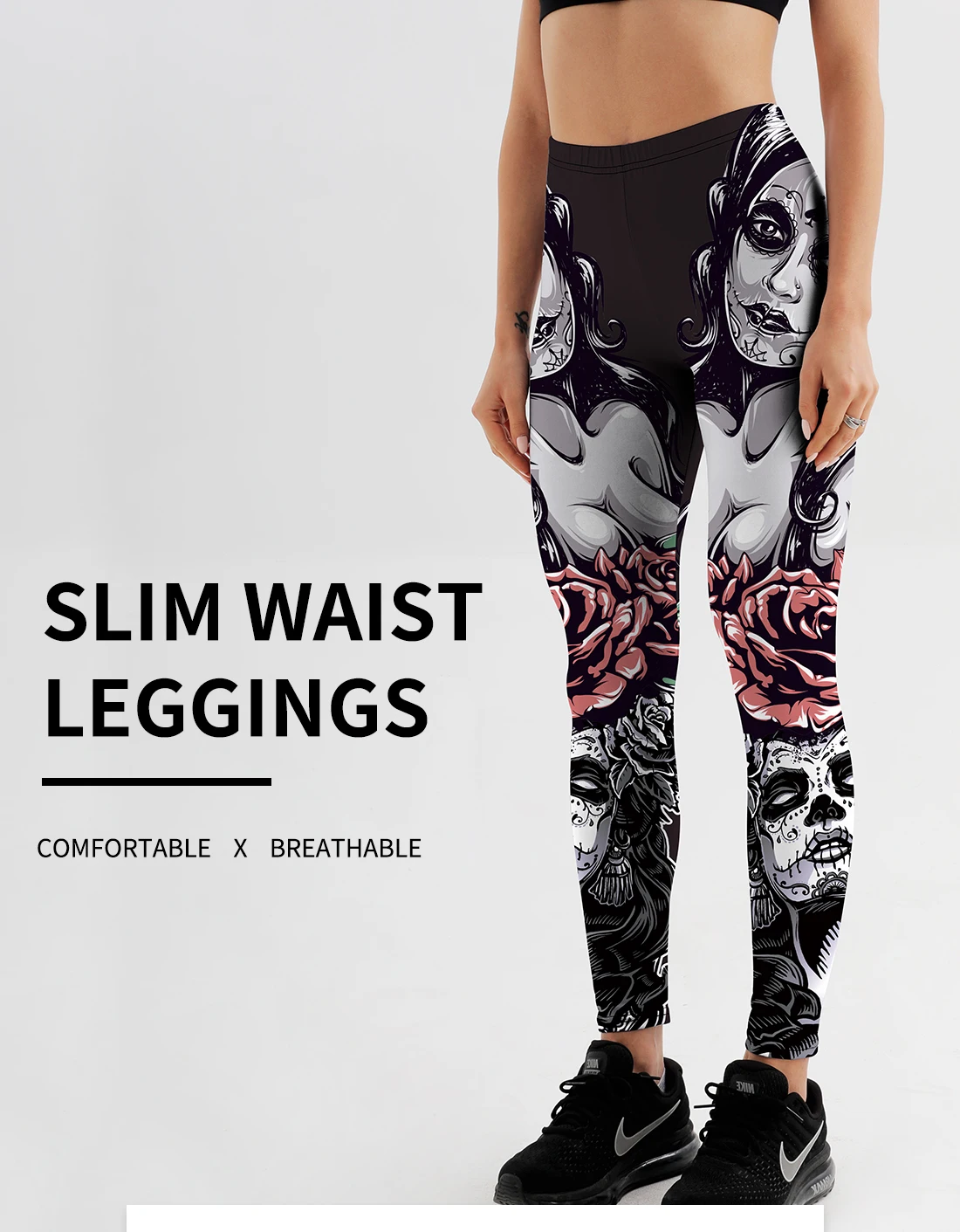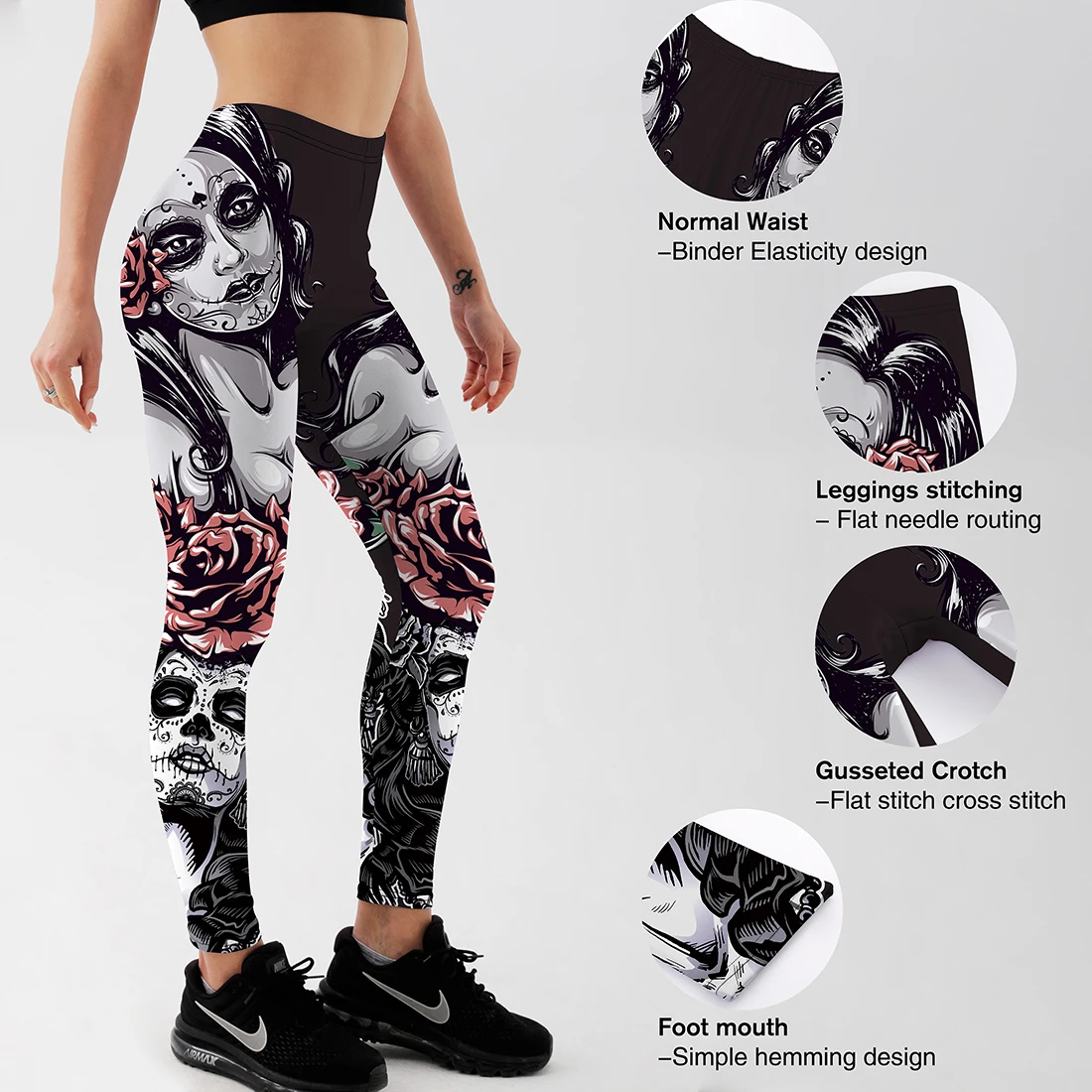 Леггинсы женские Qickitout, готические, для фитнеса, тренировок, леггинсы со средним обхватом талии, S-4XL