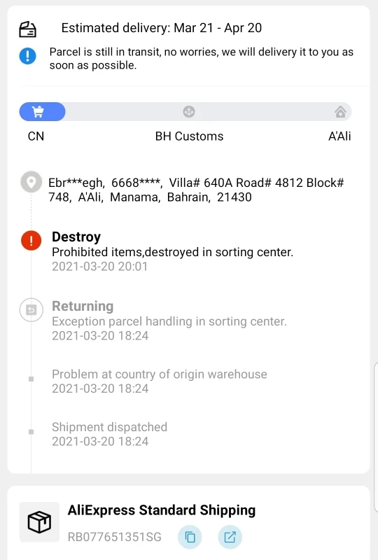 Страна: US Доставка: Cainiao Saver Shipping For Special Goods 19.05.2021