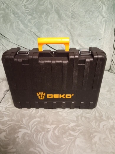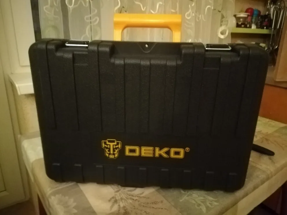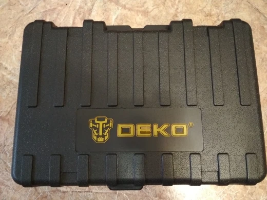 Пришло относительно быстро. Доставка на ДВ поездом. Кейс с инструментом в картонной фирменной коробке, коробка в пакете. В комплекте все по описанию, включая ходовые победитовые сверла на 6, 8, 10 мм. На вид инструмент серьезный, массивный. Из-за его массы вероятно поломался кейс изнутри в процессе доставки. Пластик оказался тонковат. Из щеток одна повреждена. От продавца запросил компенсацию в 300 р на ремонт кейса, согласился на 155р. Кейс изнутри усилил монтажной пеной. Сборка нормальная. Переключатели режима работы имеют хорошую фиксацию. В общем доволен, тем более DEKO хвалят. Хотя в технопойнте вполне можно было подобрать нечто подобное.