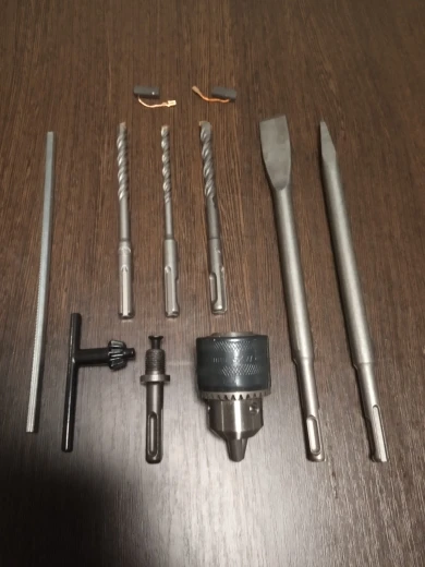 товар получил. все отлично. комплект порадовал. качество на первый взгляд добротное за такие деньги. насадки в комплекте пять штук, это пика, лопатка, сверла. для ремонта в квартире самое-то. чемоданчик тоже понравился, крепкий. Поработаю, дополню свои впечатления.