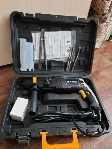 Быстрая доставка. Перфоратор хорошего качества за эти деньги, не профессиональный конечно, но достойный любого дома. Буры и пики одноразовые, а жаль, придется докупить.