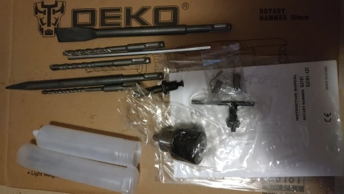 Дошло быстро. Богатый комплект, только смазки буров не хватает. Вроде работает, посмотрим как долго. По сравнению со старичком Макитой 2470 бьет слабее, хотя у Макиты 2.7ДЖ а у Деко 3.3ДЖ. В общем посмотрим что с ней будет через годик использования.