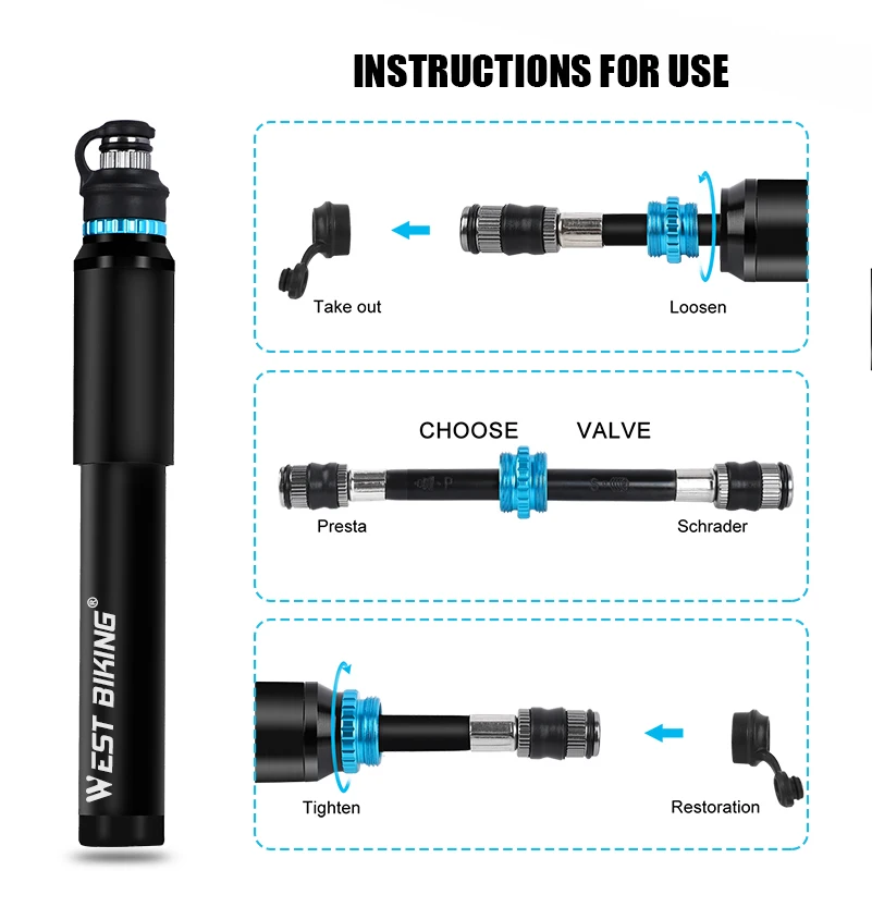 WEST BIKING портативный мини-велосипед шланг для насоса карманный насос Presta и клапан Шредера велосипед аксессуары 150 Высокое давление PSI Велосипедные насосы