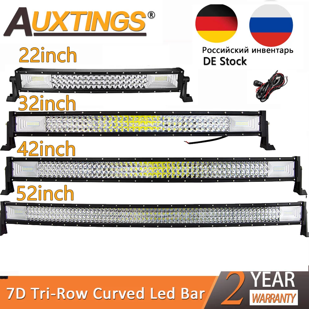 Изогнутая светодиодсветильник панель для автомобилей Auxtings, панель рабочего освещения для внедорожников, грузовиков, квадроциклов, дальнего света, 3 ряда, 22 дюйма, 32 дюйма, 42 дюйма, 52 дюйма, 7D