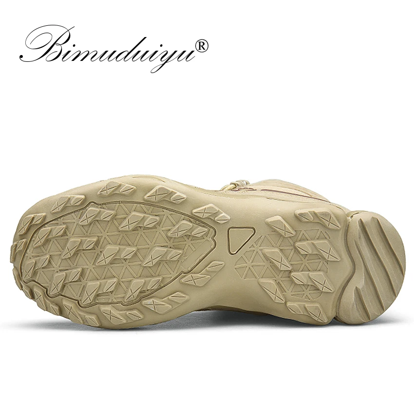 BIMUDUIYU, мужские качественные брендовые ботинки милитари, военные ботинки тактического песочного цвета, армейская обувь, кожаные нескользящие ботинки, мужские высокие кроссовки