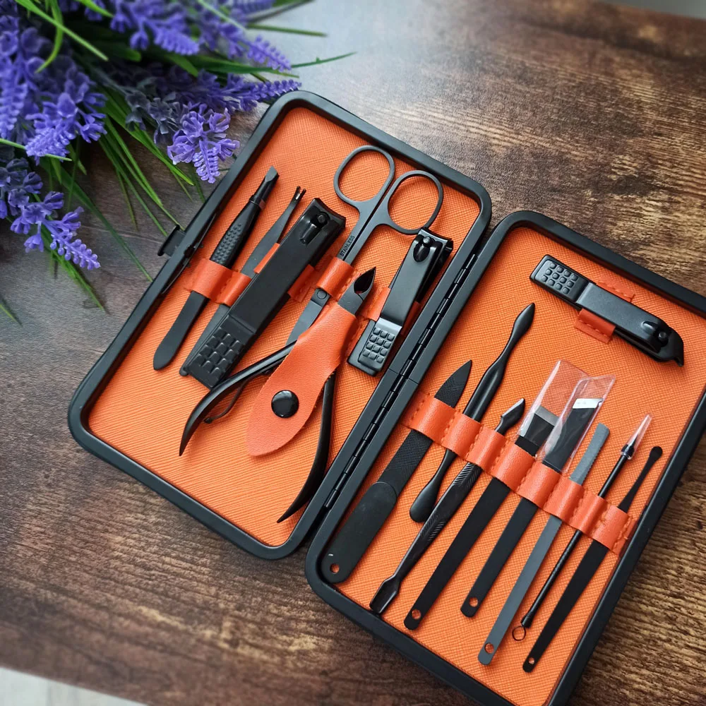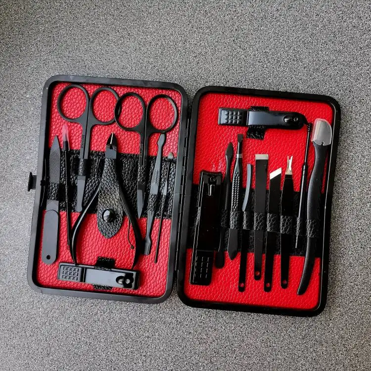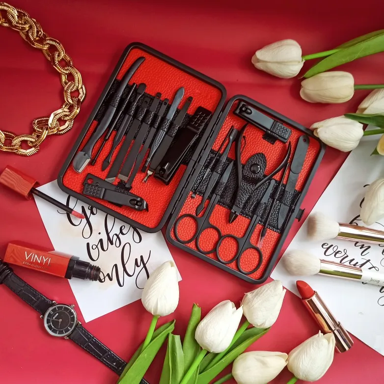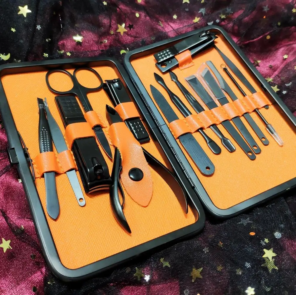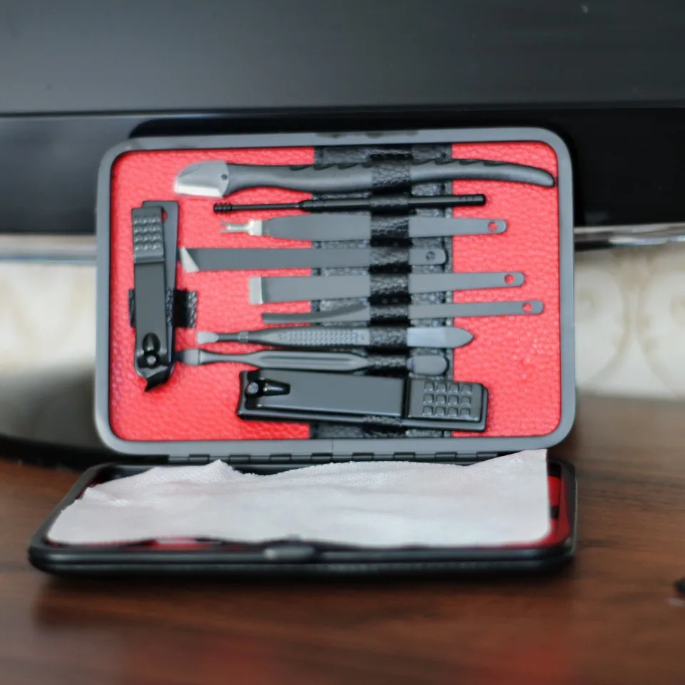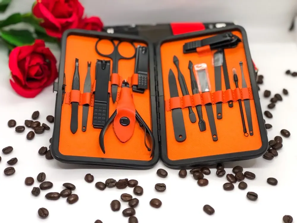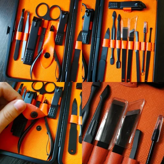 Комплект состоит из 15 предметов. Все инструменты изготовлены из стали премиум-классаTainless, обладают высокой твердостью и долговечностью. Данный набор для ухода за ногтями, за руками и лицом. Портативный размер идеален для хранения, переноски и командировки. Берем с собой. Места много не займет, зато все необходимое всегда под рукой. К качеству исполнения без нареканий. Инструменты острые. Свои функции отлично исполняют. Набор выглядит очень солидно и дорого, может стать идеальным подарком на любой праздник! А доставка всего 3 дня!!! Со склада в России.