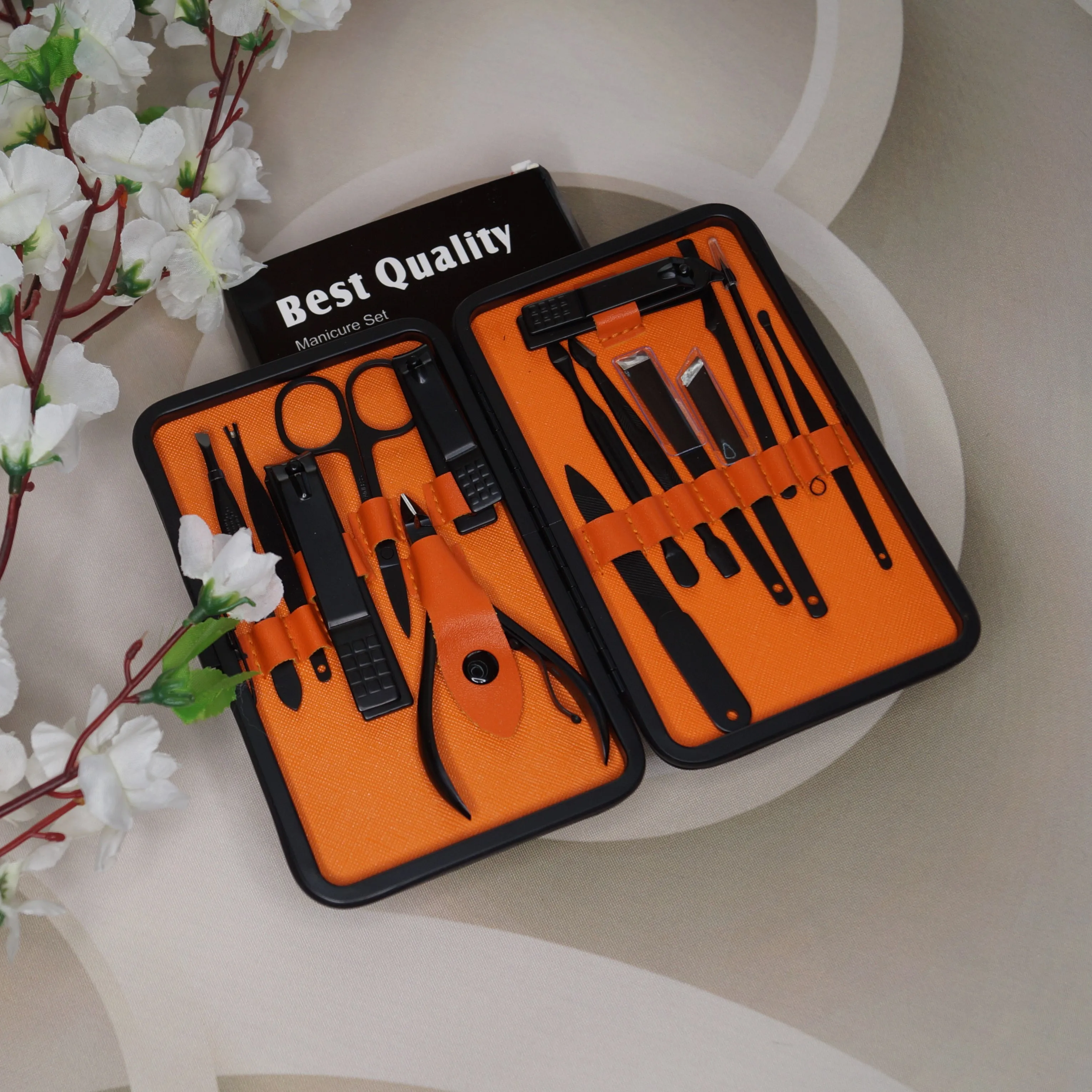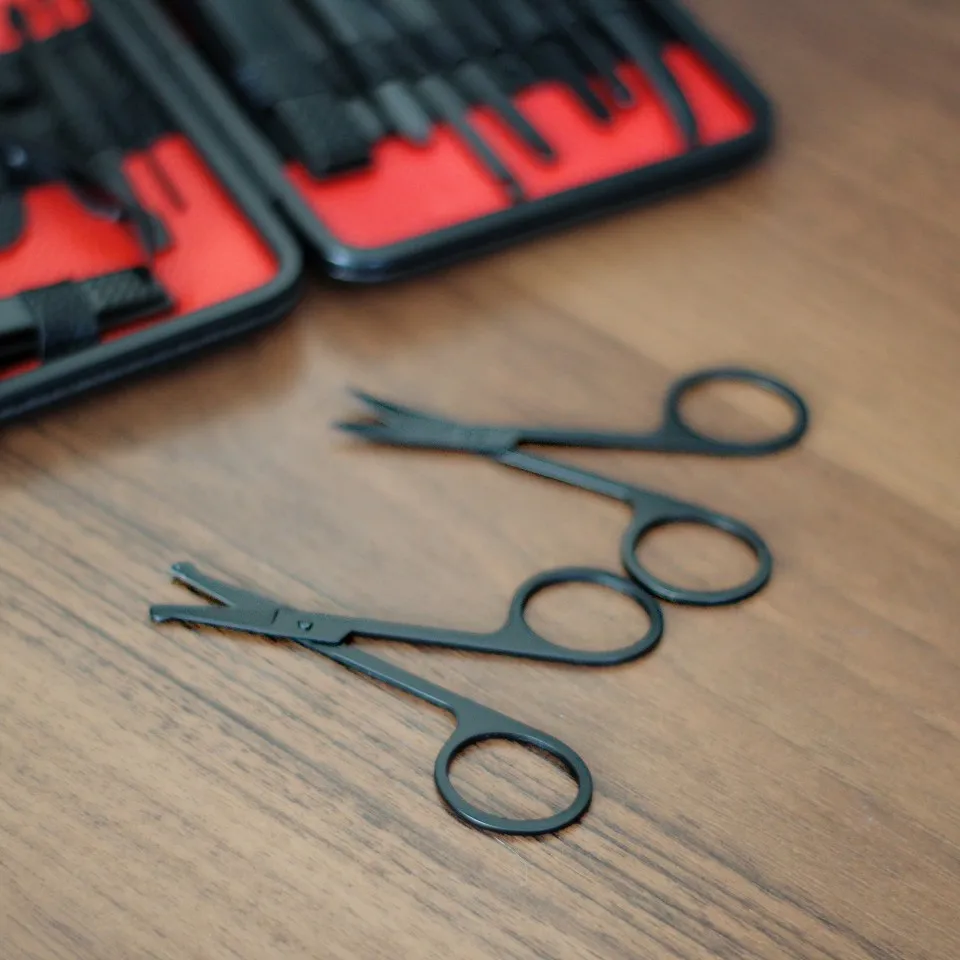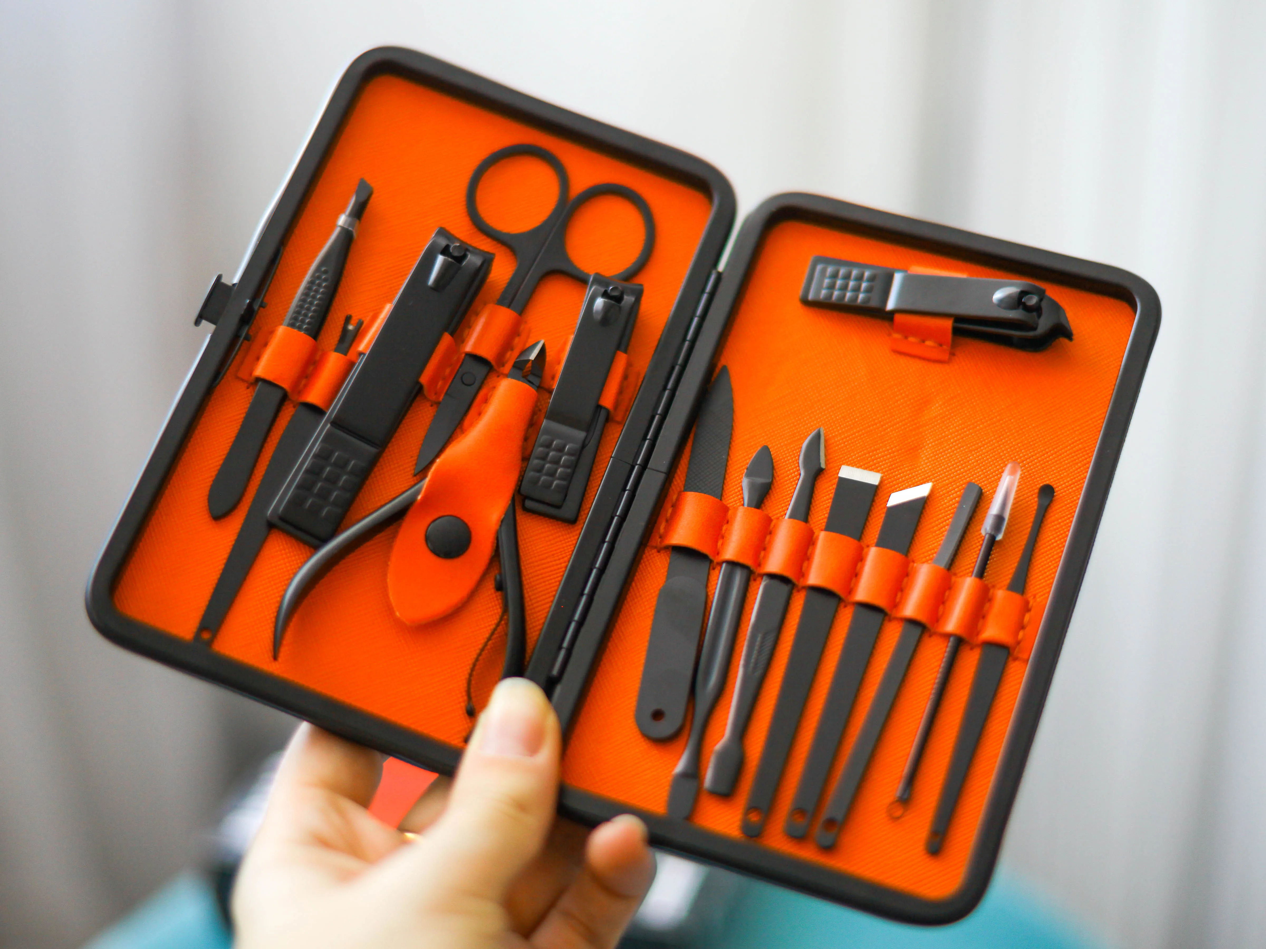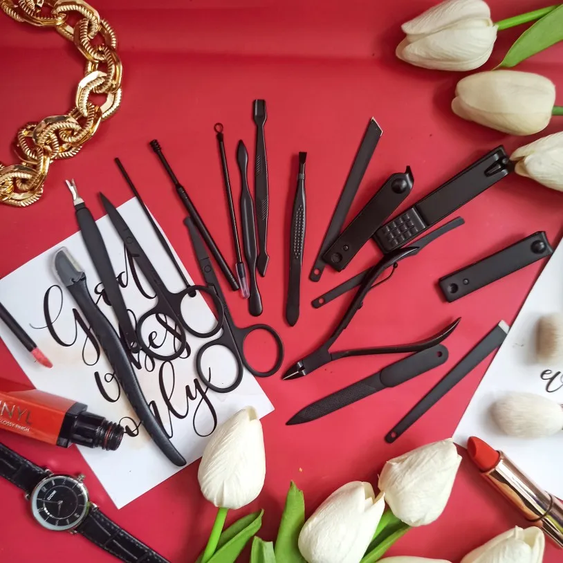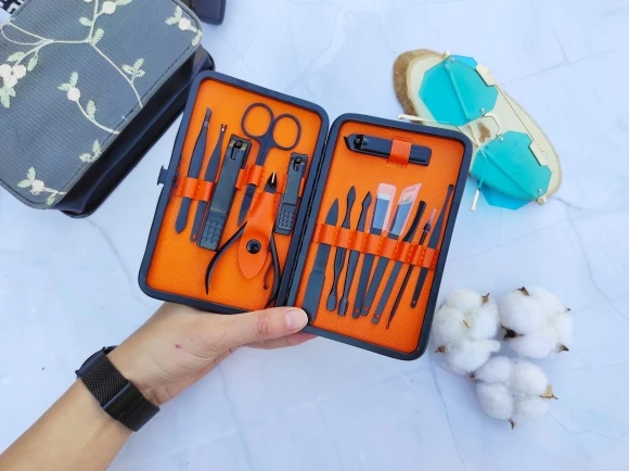 Комплект состоит из 15 предметов. Все инструменты изготовлены из стали премиум-классаTainless, обладают высокой твердостью и долговечностью. Данный набор для ухода за ногтями, за руками и лицом. Портативный размер идеален для хранения, переноски и командировки. Берем с собой. Места много не займет, зато все необходимое всегда под рукой. К качеству исполнения без нареканий. Инструменты острые. Свои функции отлично исполняют. Набор выглядит очень солидно и дорого, может стать идеальным подарком на любой праздник! А доставка всего 3 дня!!! Со склада в России.