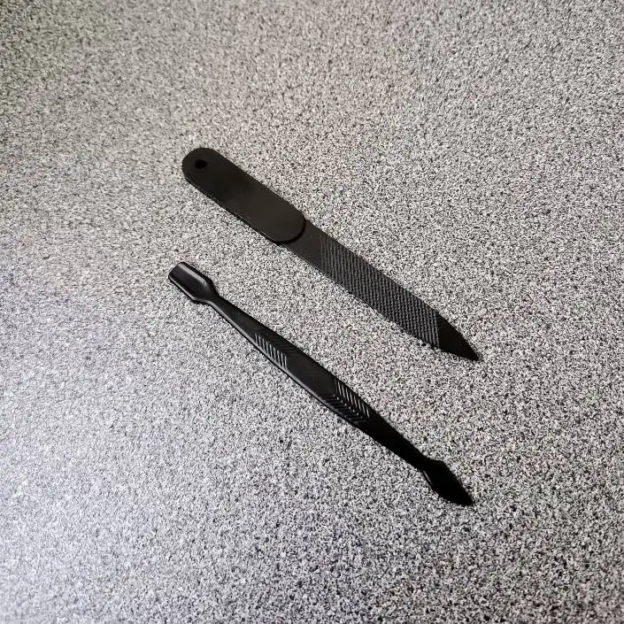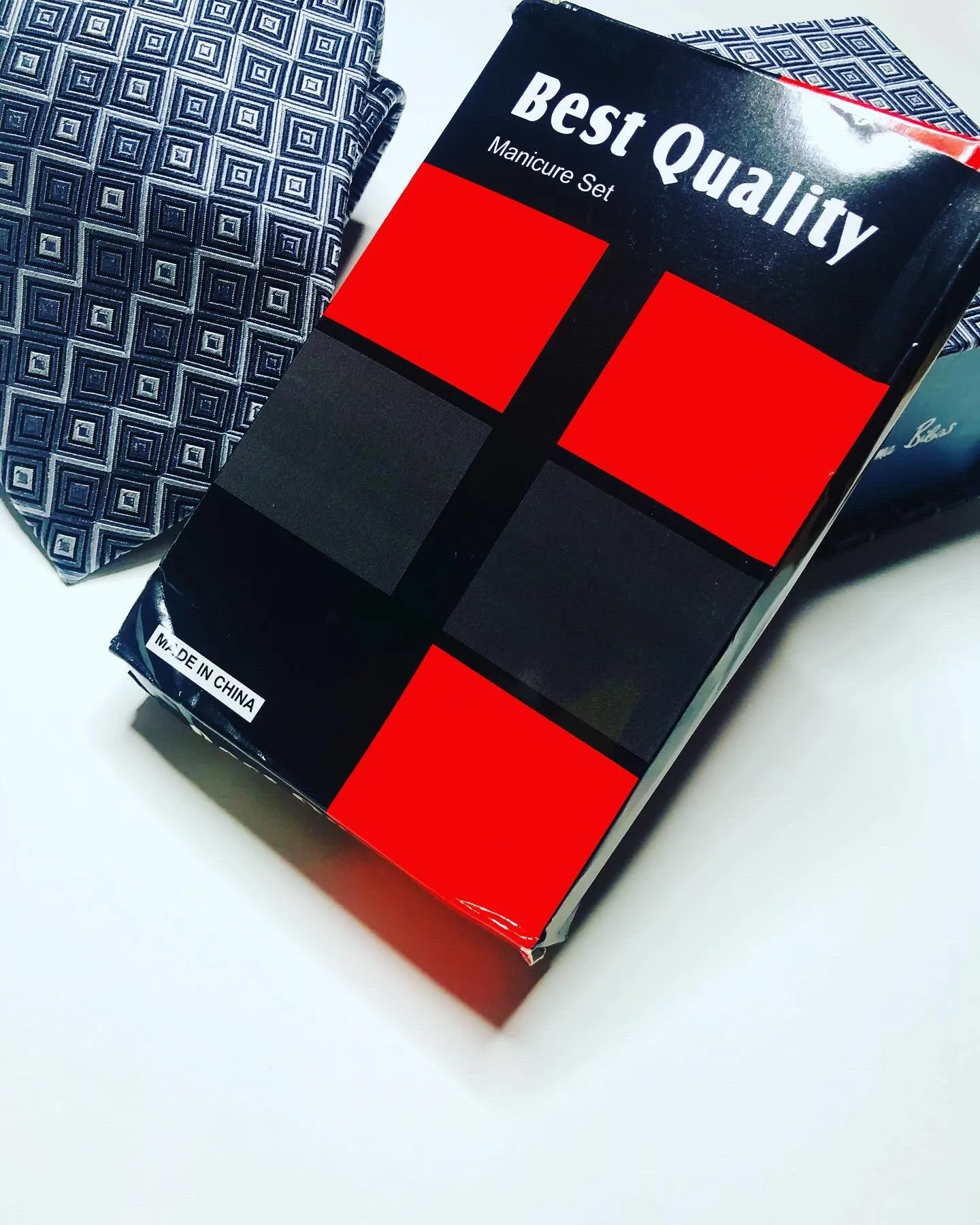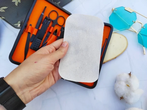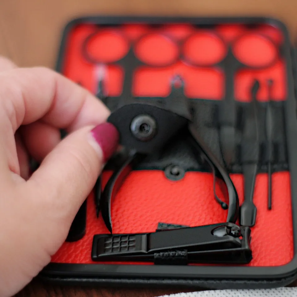 Доставка в Курск быстрая, пару дней курьером до квартиры. Упаковка хоть и в куче пупырки, но коробочка набора помчалась. Внутри всё целое. Я не любитель маникюра, мне легче заплатить, чтоб кто-то сделал, но для дома иметь наборчик маникюрных принадлежностей тоже нужно. Сам кейс матовый, черный, на замке, на который нужно нажать, чтобы открыть. Внутри всё лежит аккуратно на своих местах, даже есть пластиковые чехлы, чтобы внезапно не пораниться. Очень нравится, что весь набор в черном матовом оттенке, смотрится красиво. Из всего имеющегося пользоваться буду пинцетом, ножницами, приборами для кутикулы и для удаления чёрных точек. Пилочка, наверное, самое бесполезное из всего, так как не представляю, как такой можно нормально подпилить ноготь. Щипцами для стрижки ногтей пользуется молодой человек, ему ими удобнее (ещё удобно стричь когти кошке).