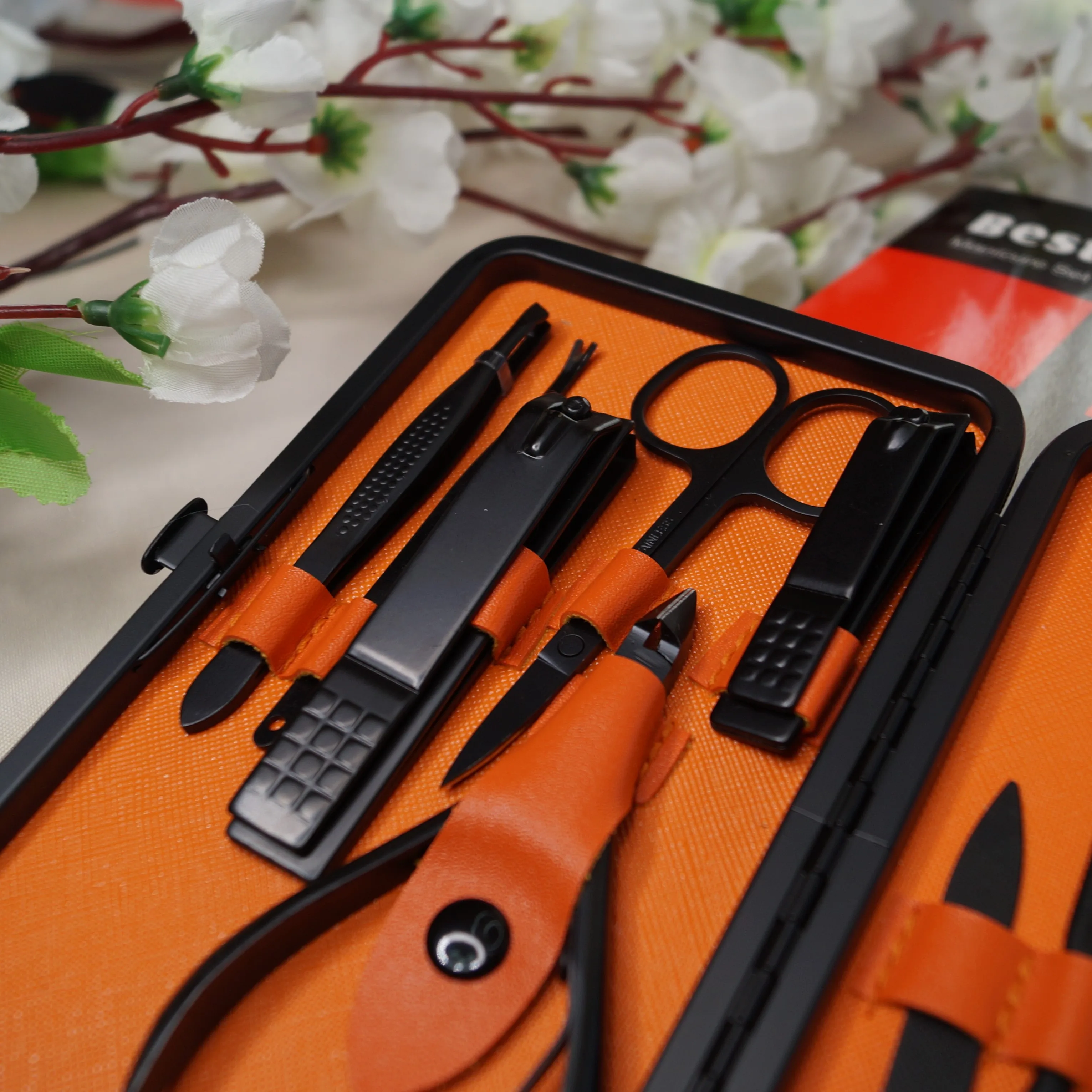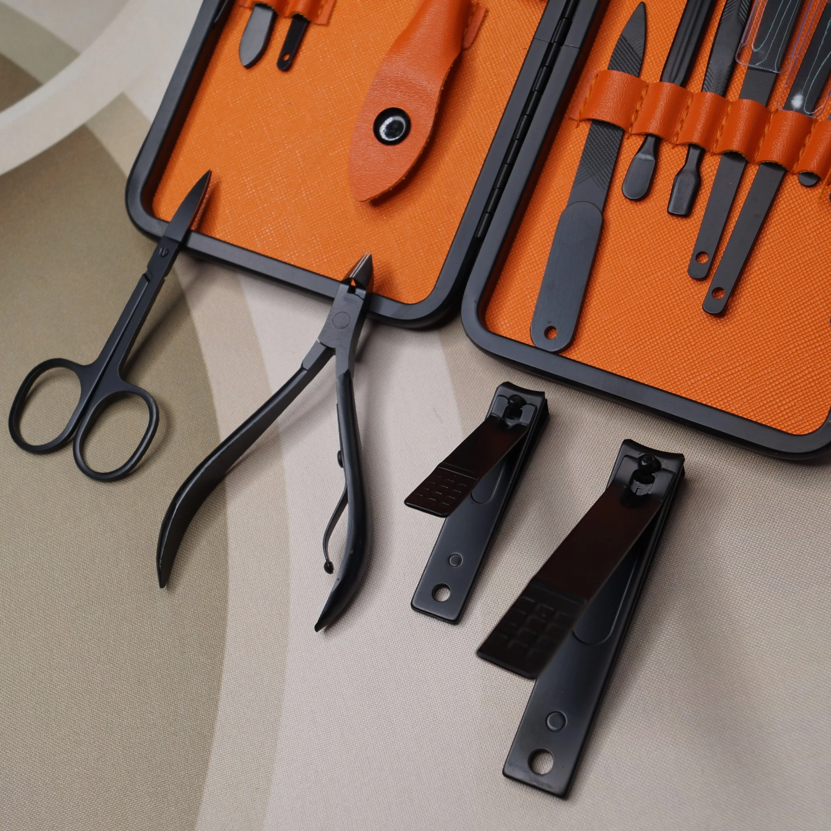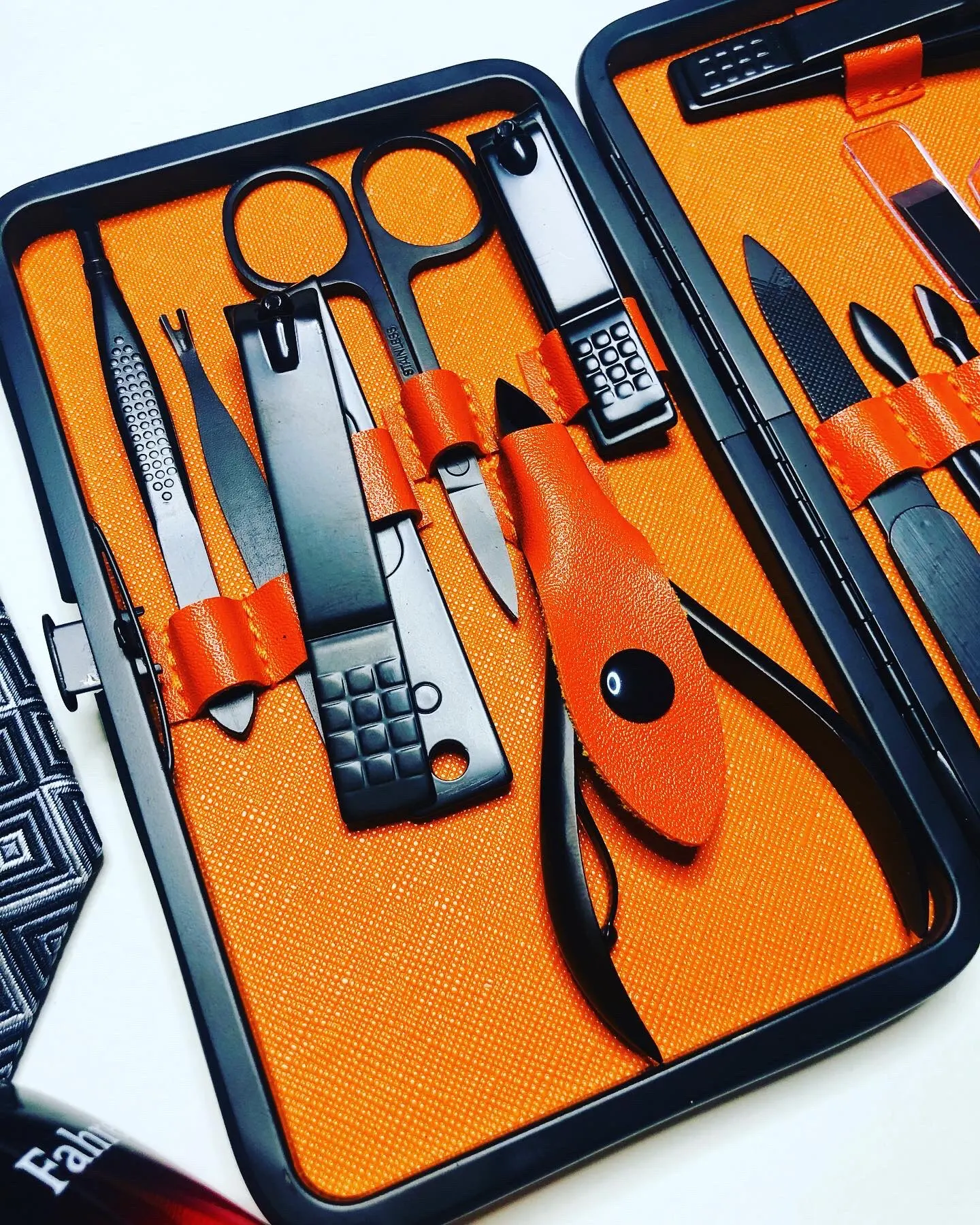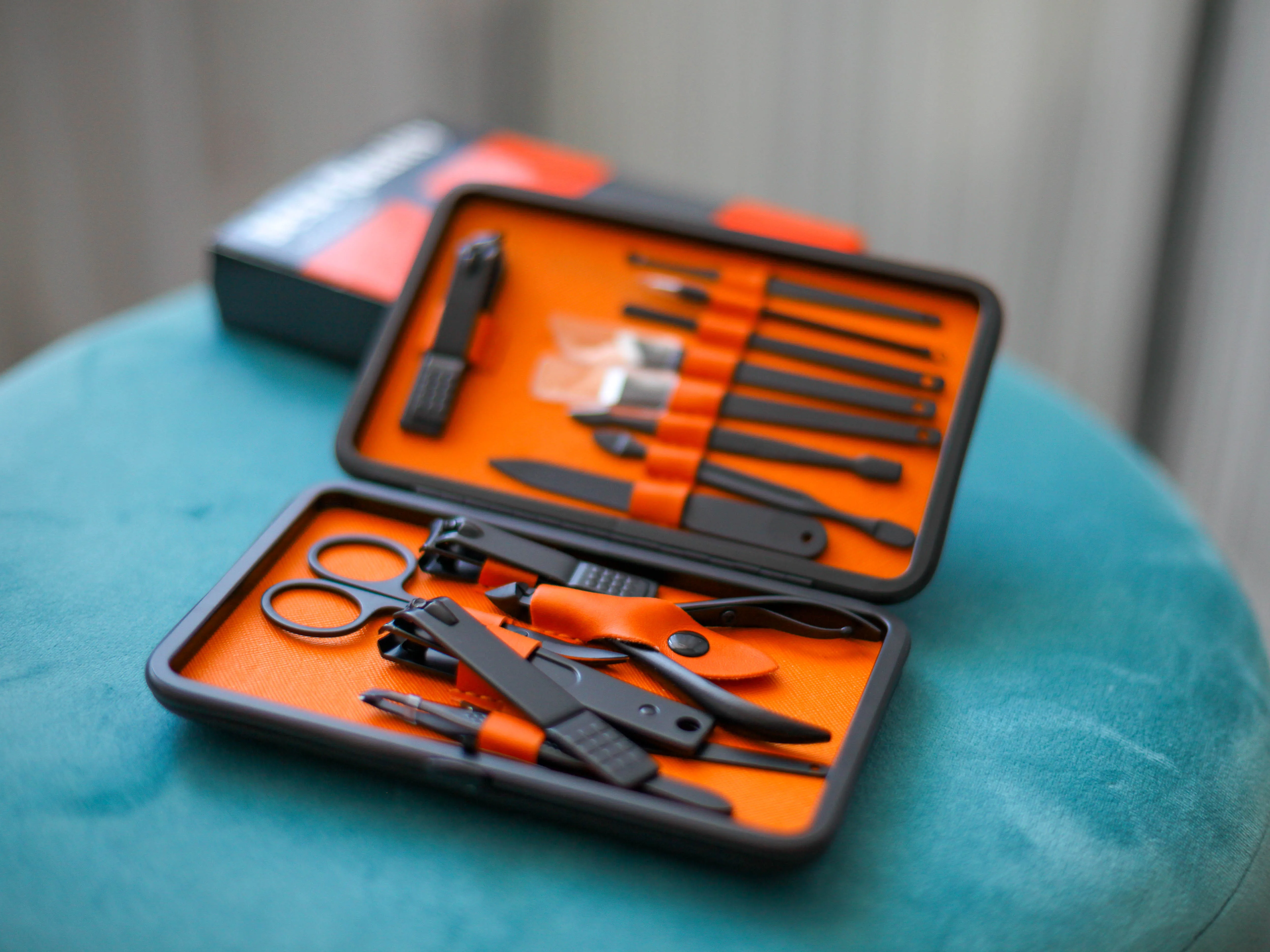 Маникюрный набор состоит из 18 предметов. Инструменты острые, хорошо режут. Не думаю что это профессиональный набор, скорее всего чёрное покрытие со временем облезет. Но своих денег точно стоит. Красивый и удобный футляр, всё на своём месте.