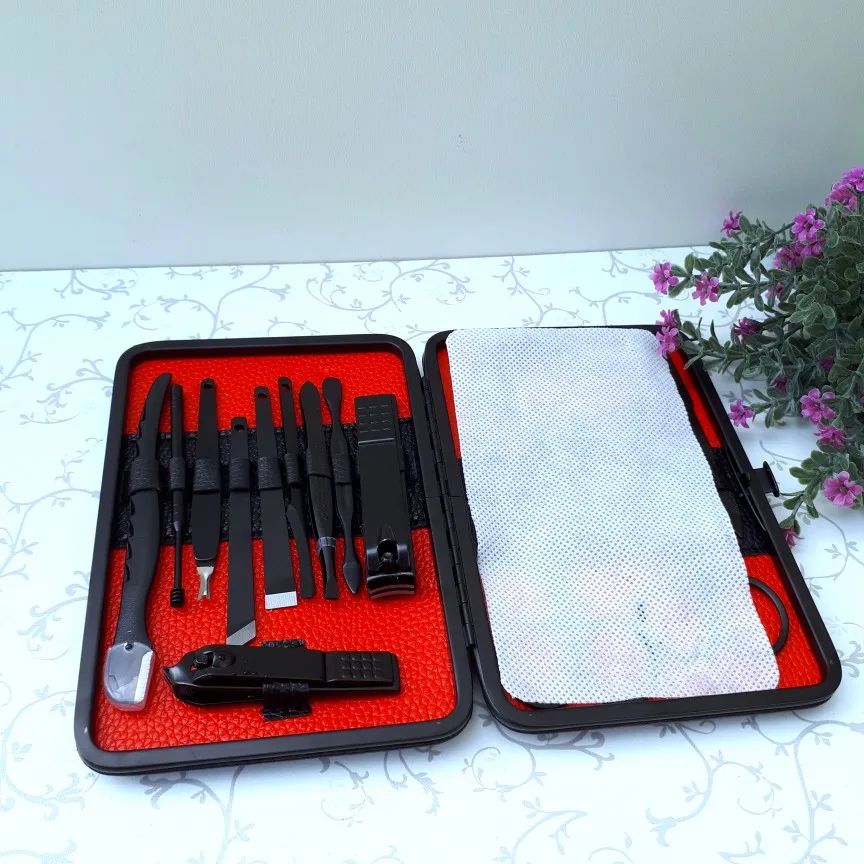 Мне пришел набор для маникюра и педикюра в жестком черном чехле из заменителя кожи, состоящий из 15 предметов! Я пока не представляю, куда так много, но в качестве подарка набор точно впечатлит! Все предметы стальные, черного цвета, аккуратно разложены в чехле, при закрывании слышен щелчок. Набор обалденный, рекомендую!