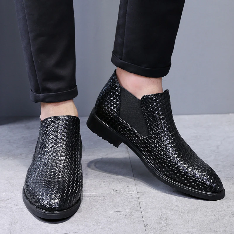 ZYYZYMмужские ботинки Челси; Сезон весна-осень; Ручная вязка; Высокие стильные водонепроницаемые классические модные кожаные ботинки; Мужская обувь; 38-48