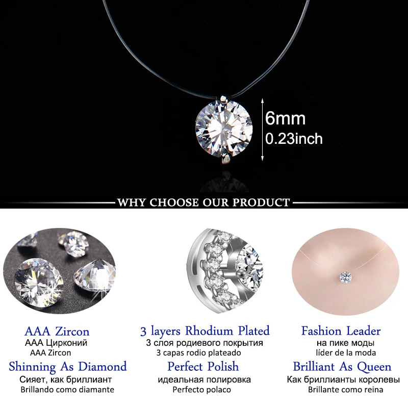 LXOEN модное ожерелье с кулоном из циркона, невидимое ожерелье на леске для женщин с кристаллом, колье-чокер, ожерелье, ювелирные изделия, подарок