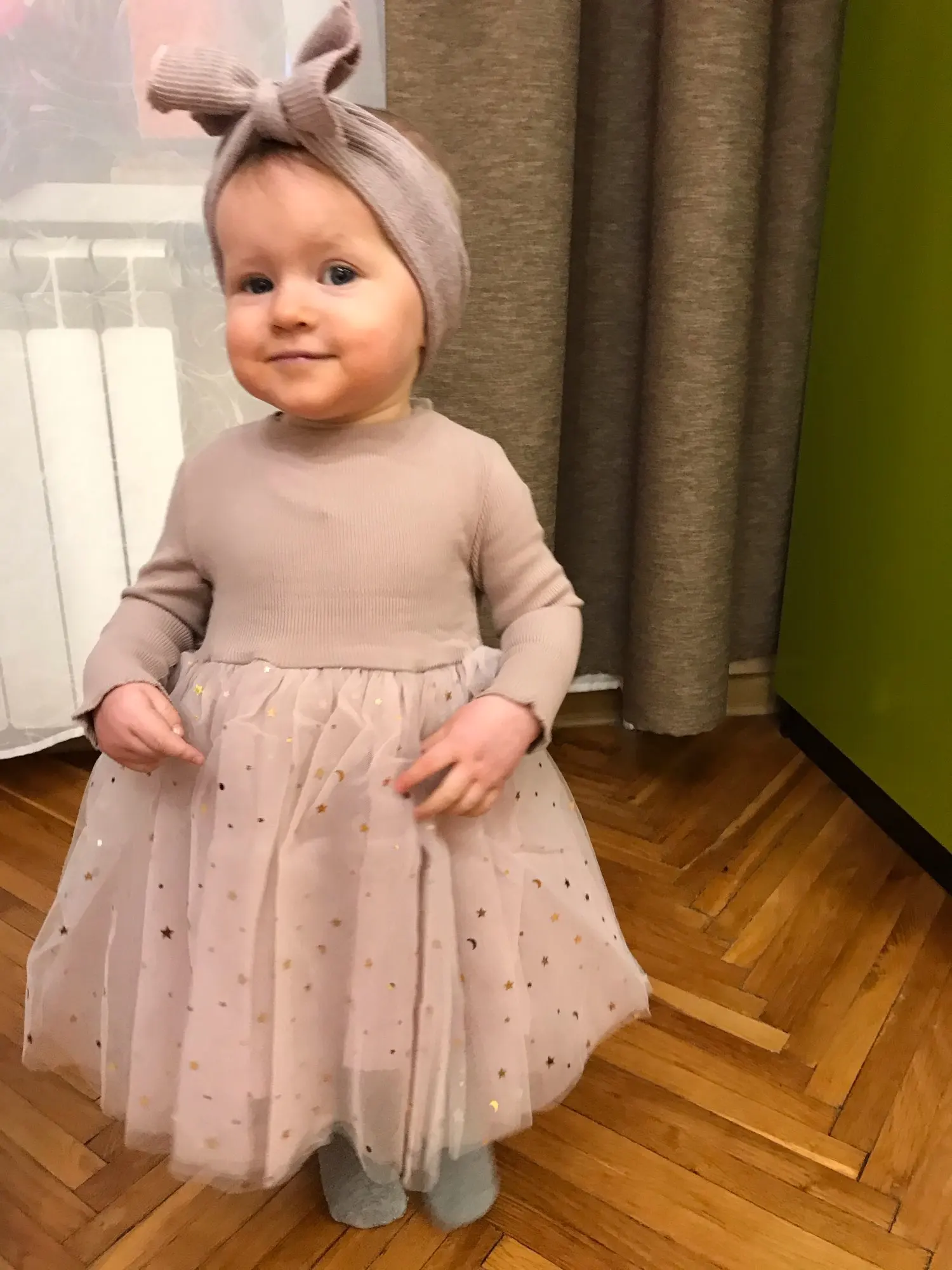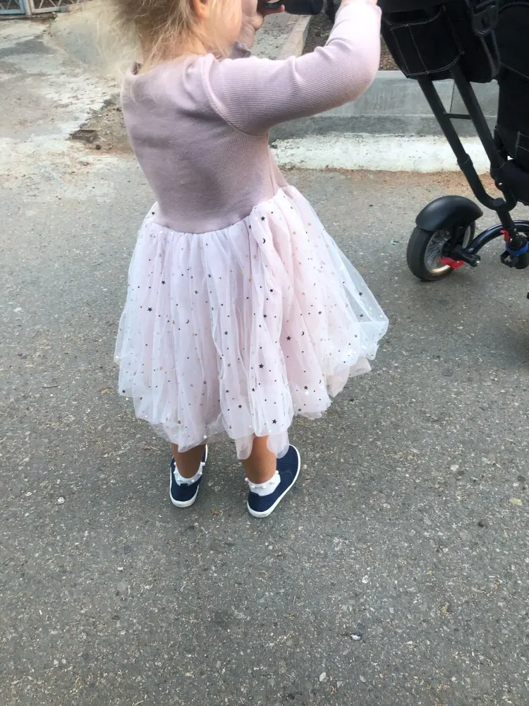 Очень красивое платье, на рост 104 сел хорошо, но ребёнок у меня худенький, и качество понравилось